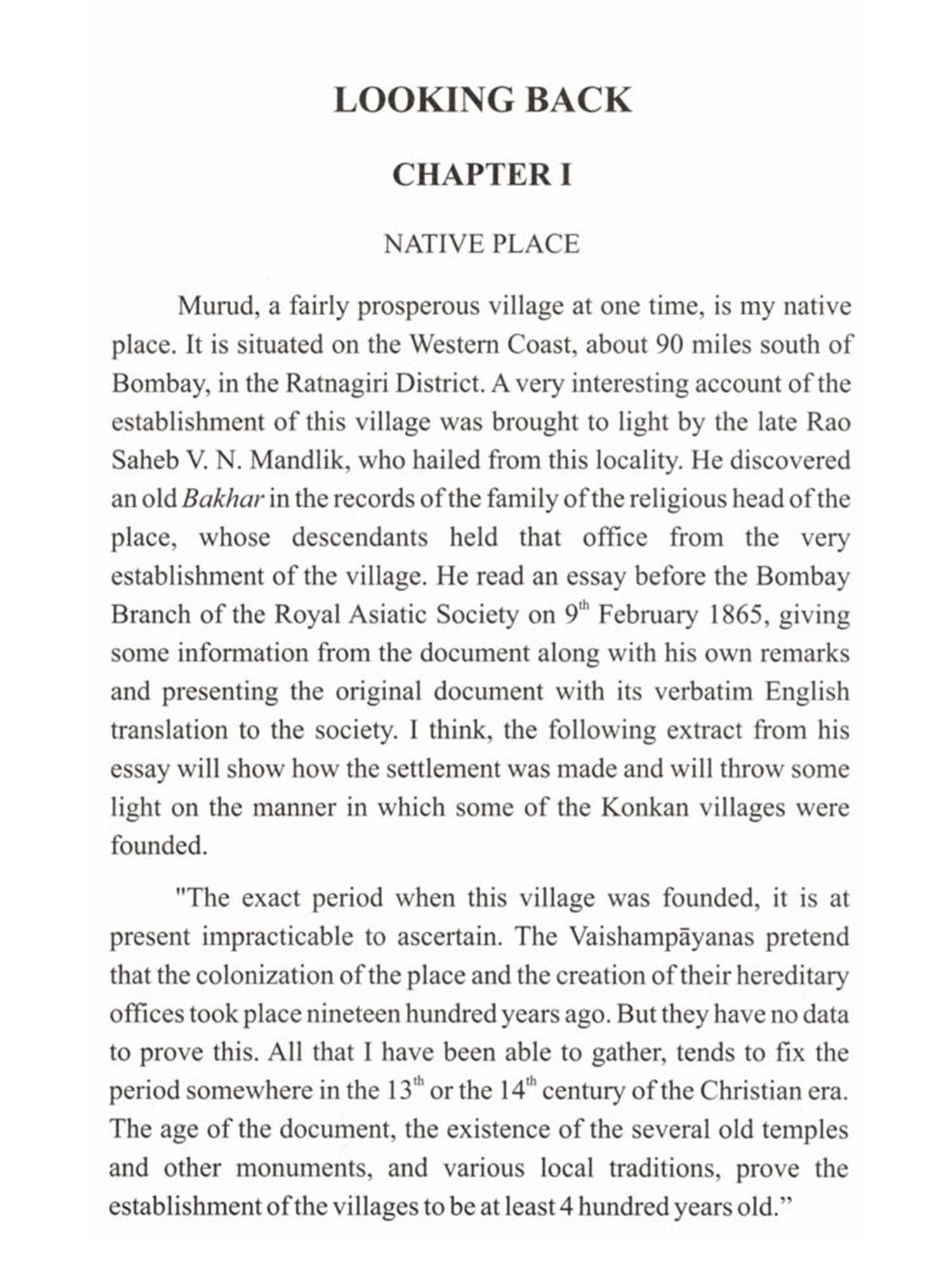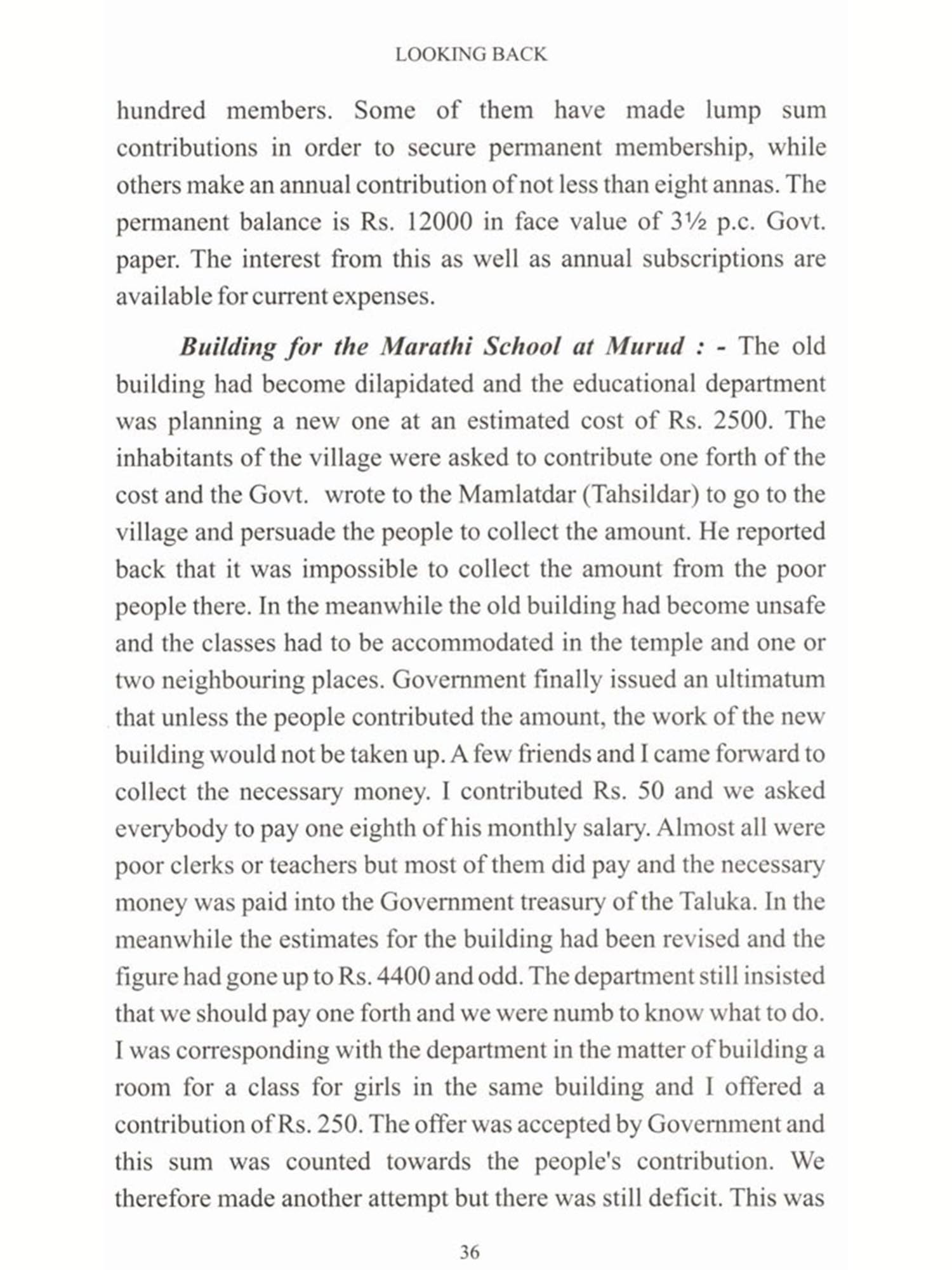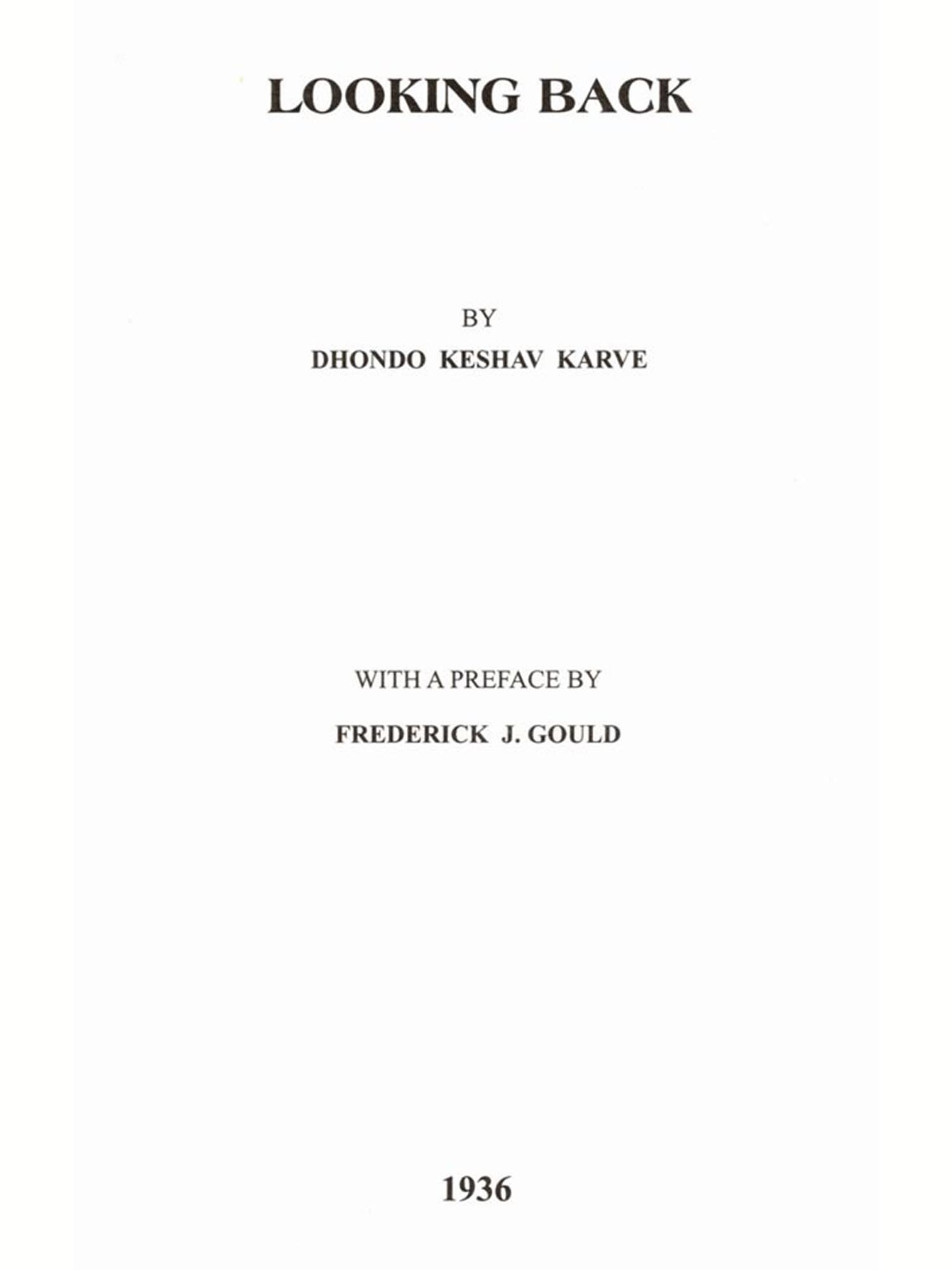 I am happy that a new edition of 'Looking Back', an autobiography of Dr. Dhondo Keshav Karve is being published. Published 58 years ago in 1936, it contains valuable information about the social conditions of that period as also the trials and tribulations which he had to face. It also shows the social zeal and indomitable spirit with which he started the work of emancipation and education of women. His life story, the struggle and the achievements, makes interesting reading and reflects the dedication of this great social reformer. He lived for 104 years and was fortunate to witness the all-round expansion of the activities started by him. A fitting tribute was paid to him when he received 'Bharat Ratna', the Highest Honour of the land, on his hundredth birthday