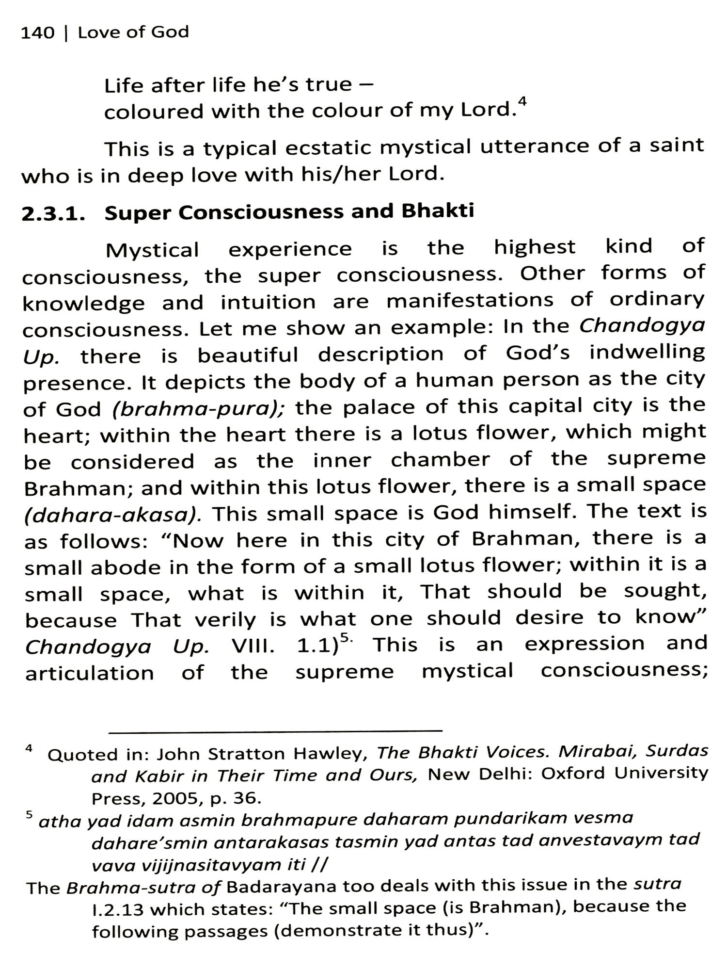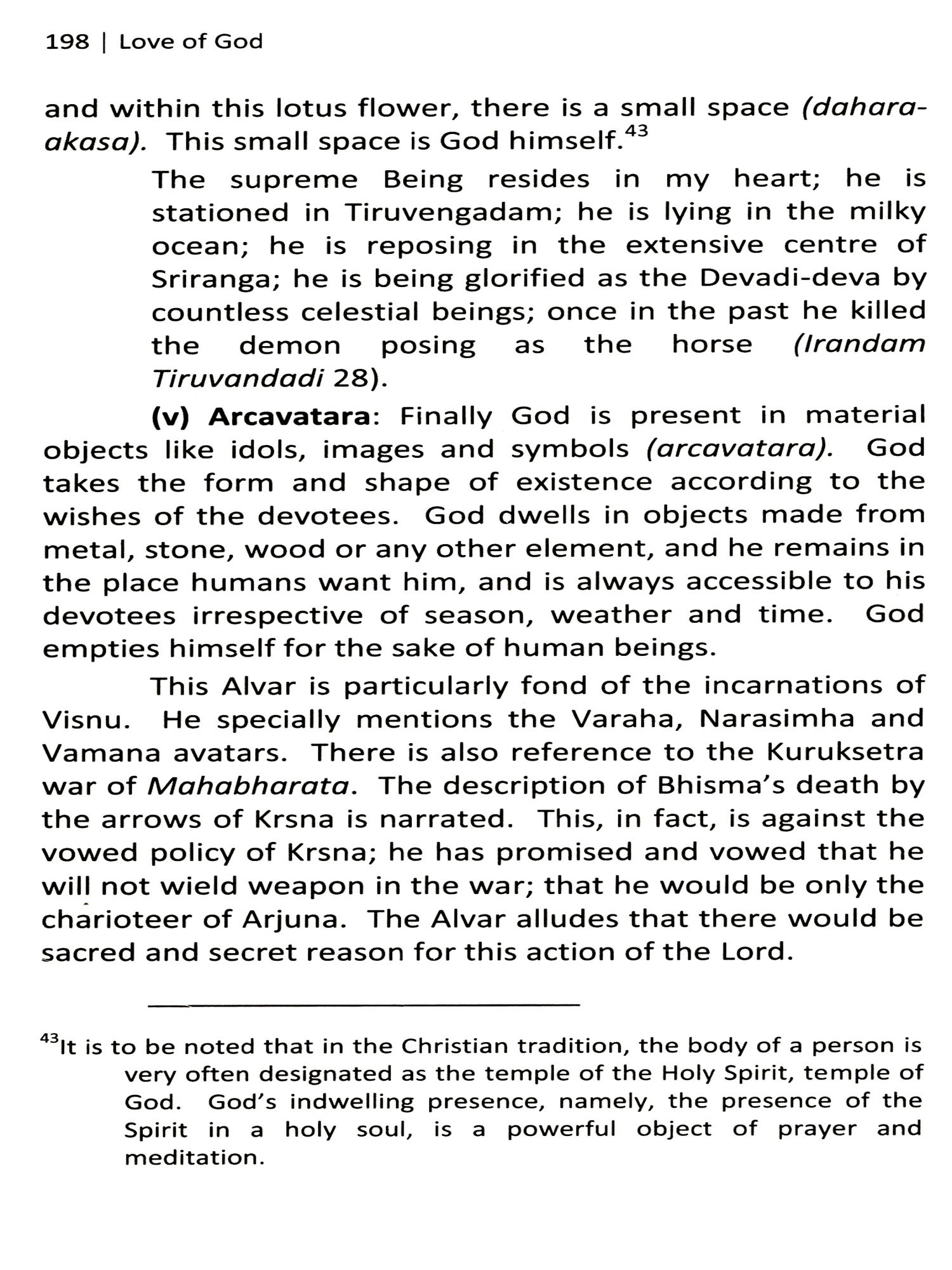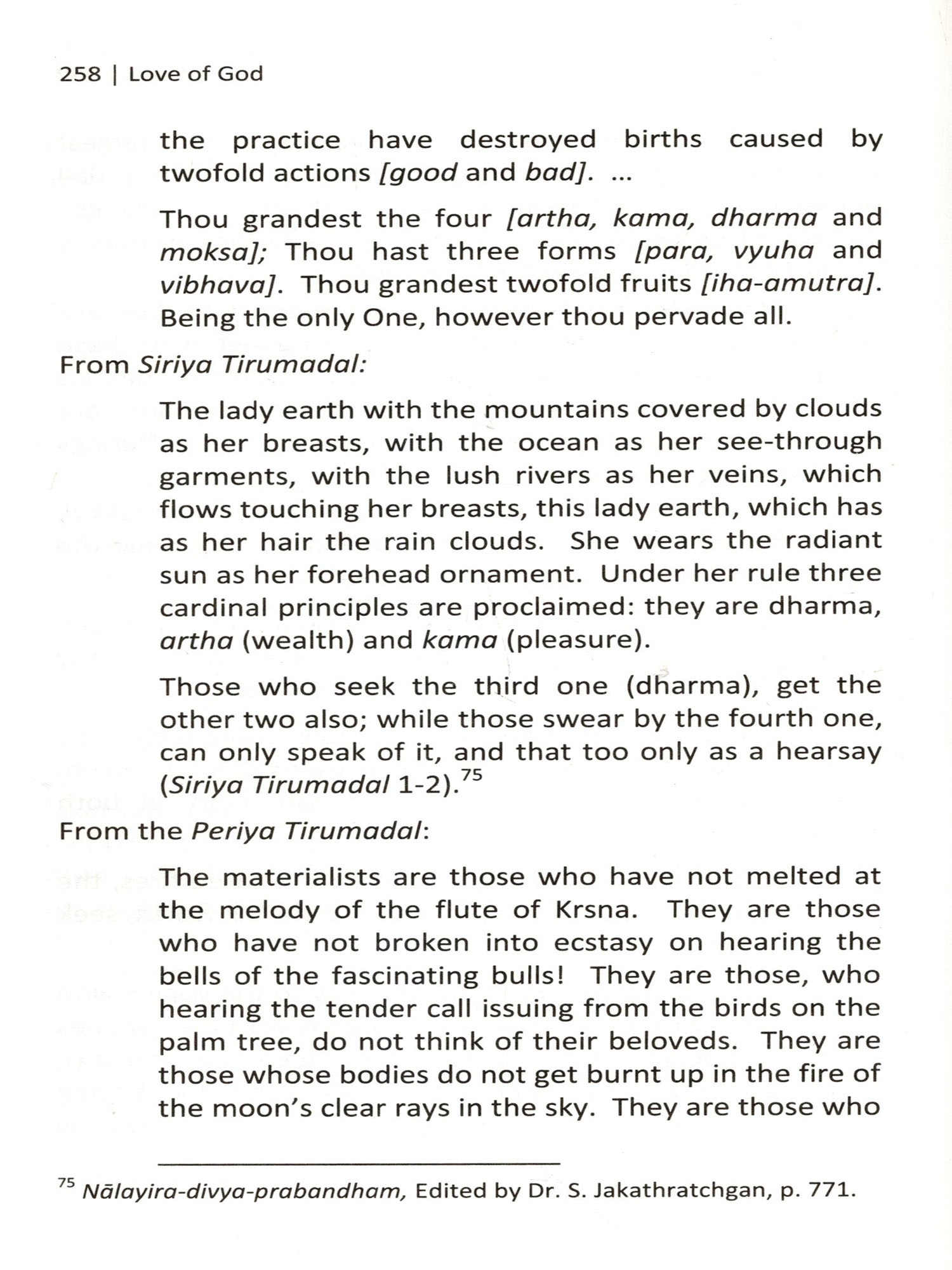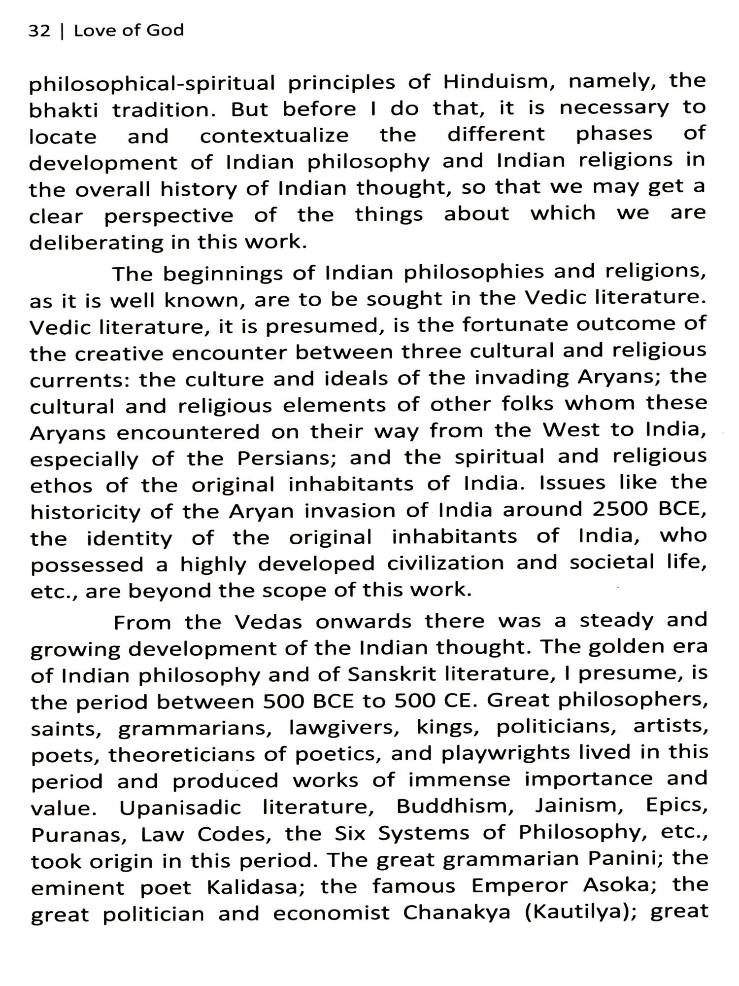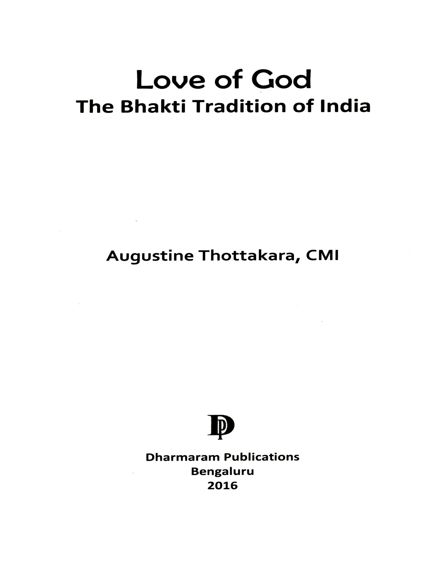 The title of this book is Love of God: The Bhakti Tradition of India. The expression 'Love of God' can mean two things: first, God's love for us humans and for this world: "God's unfailing love for us is an objective fact affirmed over and over in the Scriptures. It is true whether we believe it or not. Our doubts do not destroy God's love, nor does our faith create it. It originates in the very nature of God, who is love, and it flows to us through our union with his beloved Son" (Jerry Bridges: American Evangelical Author and speaker). Second, our love for God. In this treatise we are dealing with the second type of love of God, namely, our love for God and our commitment to this love.