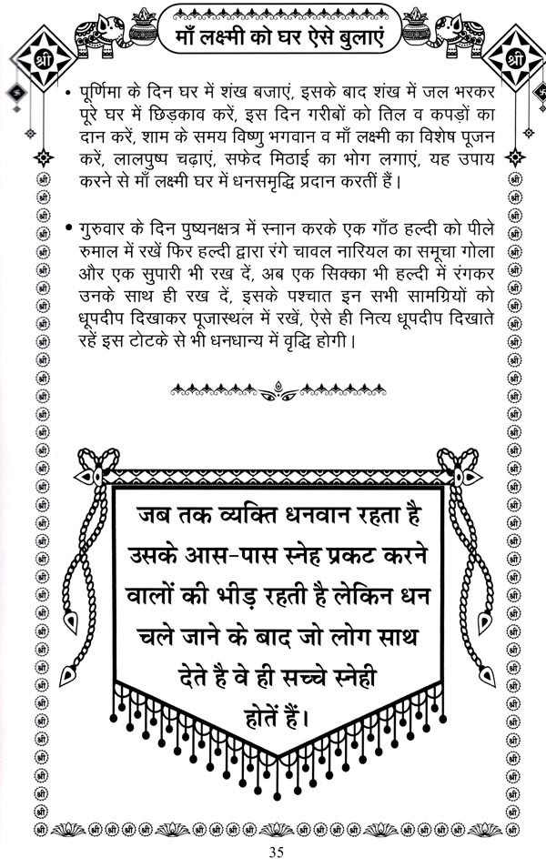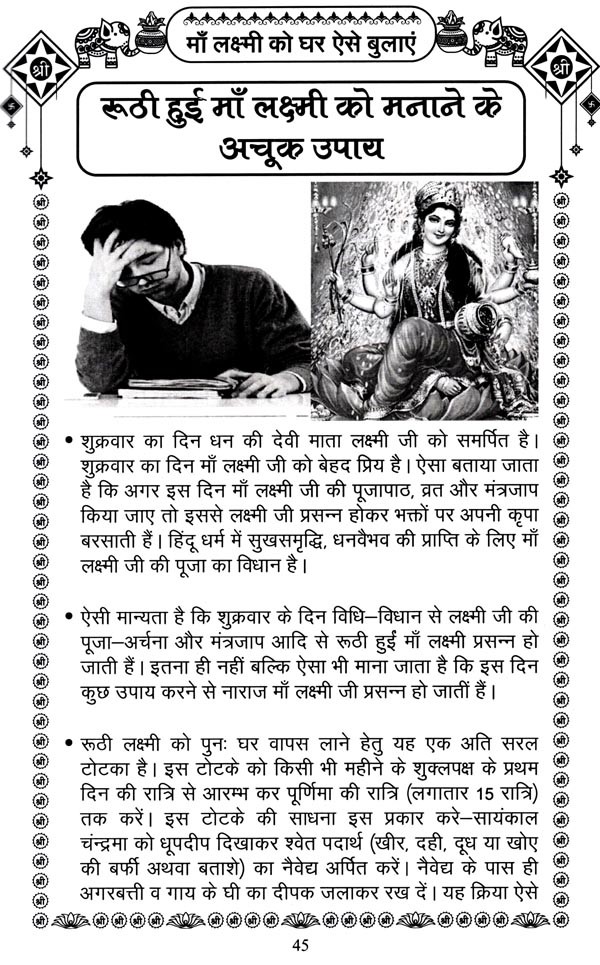 आज मंहगाई के दौर में हर कोई यही चाह रहा है कि वह धनवान हो परंतु अथक प्रयासों के बाद भी सफलता हाथ नहीं लग रही है, जिन समस्याओं का समाधान विज्ञान के पास भी नहीं है उनका सफल समाधान यंत्र-मंत्र-तंत्र-उपाय प्राचीच ग्रंथों, शास्त्रों में है। नियम-श्रद्धा और अटूट विश्वास के साथ किया गया उपाय व्यक्ति को 100% लाभ पहुंचाता है इस चमत्कारी पुस्तक को पढ़ने से सहज ही अध्यात्मिक ज्ञान की प्राप्ति उपाय करने से दरिद्रता-गरीबी दूर होकर धन-समृद्धि में शीघ्र वृद्धि होने लगती है।