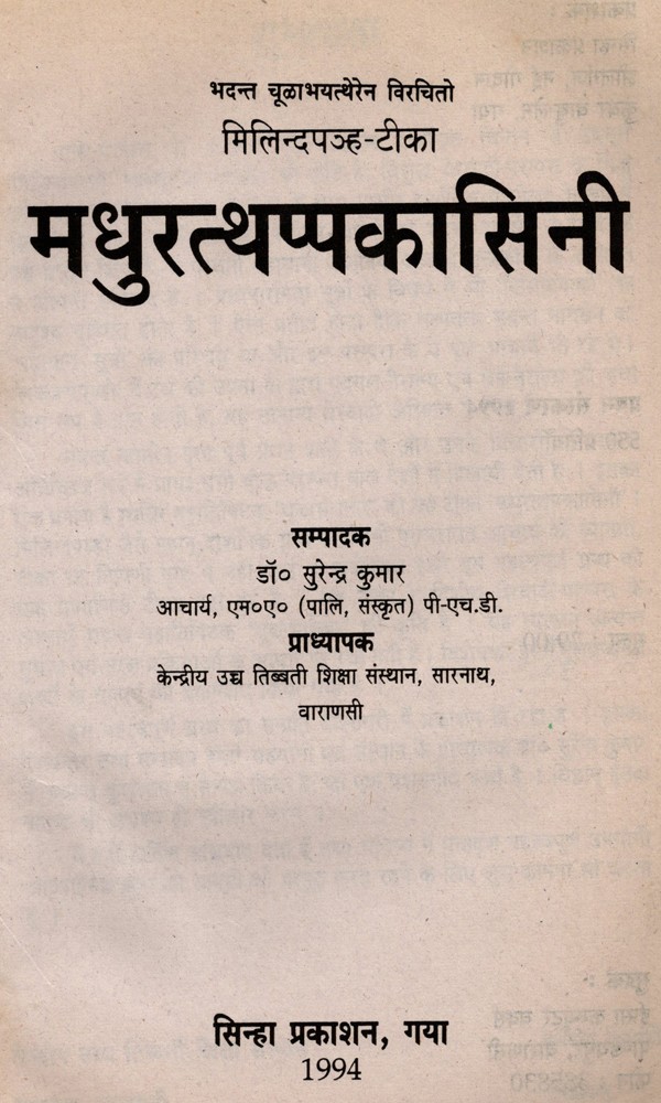 मधुरत्थप्पकासिनी मिलिन्द पञ्ह-टीका- Madhurathappakasini Milinda Panha-Tika- An Old and Rare Book (Only 1 Quantity Available)
