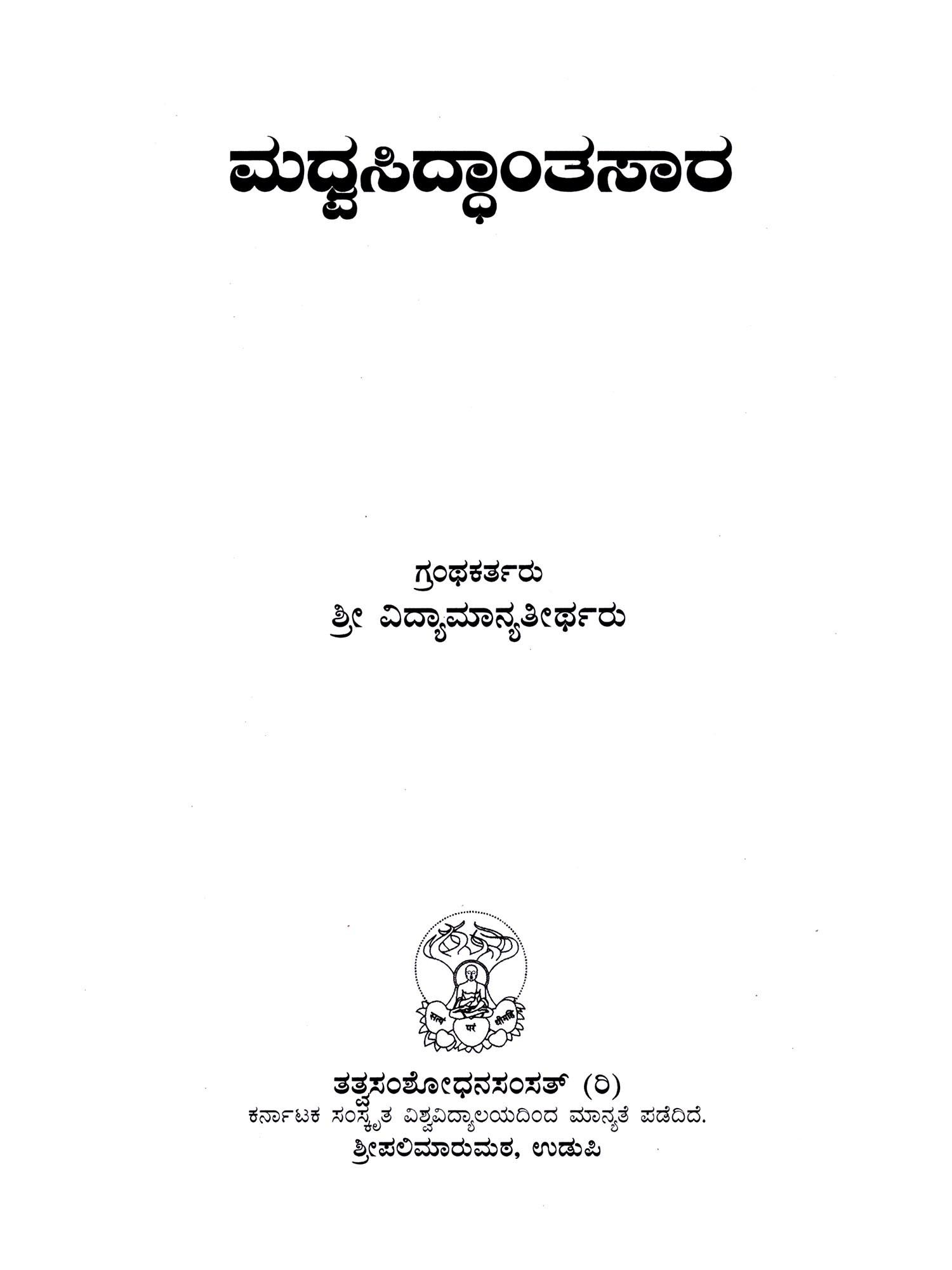 ಶ್ರೀಮಧ್ವಾಚಾರ್ಯರು: ಜೀವನ ಚಿತ್ರ ಮತ್ತು ಸಿದ್ಧಾಂತ- Srimadhawacharyaru: A Brief Life Sketch Philosophy and Teachings of Sri Madhwacharya (Kannada)