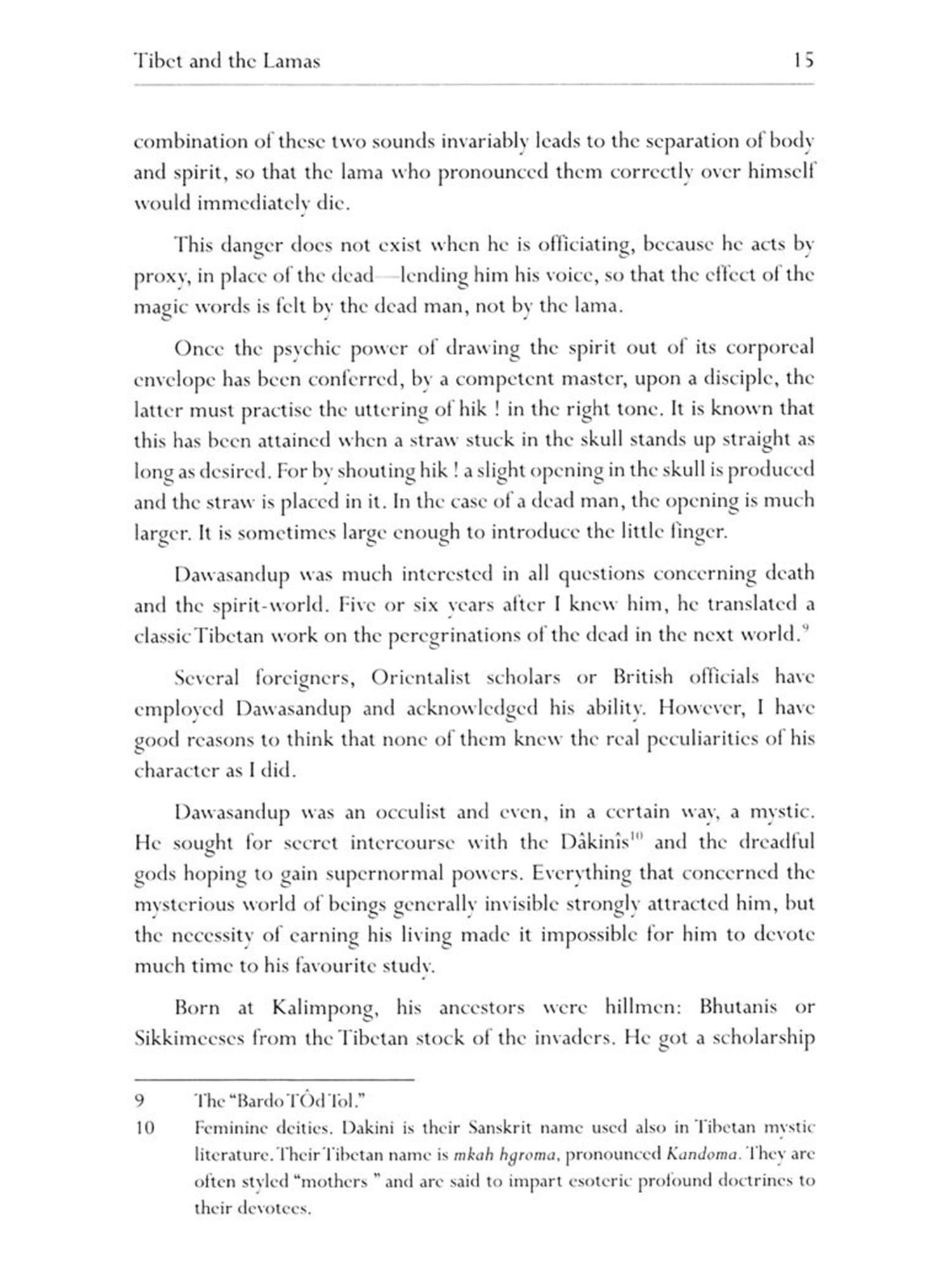 For many Westerners Tibet is wrapped in an atmosphere of mystery. The ""Land of Snows is for them the country of the unknown, the fantastic and the impossible. What superhuman powers have not been ascribed to the various kinds of lamas, magicians, sorcerers, necromancers and practitioners of the occult who inhabit those high tablelands, and whom both nature and their own deliberate purpose have so splendidly isolated from the rest of the world? And how readily are the strangest legends about them accepted as indisputable truths! In that country plants, animals and human beings seem to divert to their own purposes the best established laws of physics, chemistry, physiology and even plain common sense.