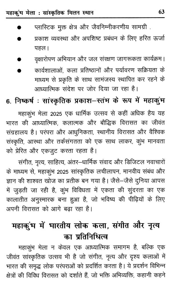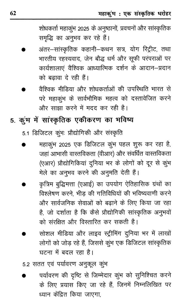 यह आयोजन न केवल श्रद्धालुओं के लिए आस्था और आत्मशुद्धि का अवसर होता है, बल्कि यह भारत की सांस्कृतिक समृद्धि, धार्मिक सहिष्णुता और जीवन दर्शन की व्यापकता को भी उजागर करता है। महाकुंभ मेला इस बात का प्रमाण है कि भारत की सांस्कृतिक परंपराएं आज भी जीवंत हैं और लोगों के जीवन में गहराई से जुड़ी हुई हैं।