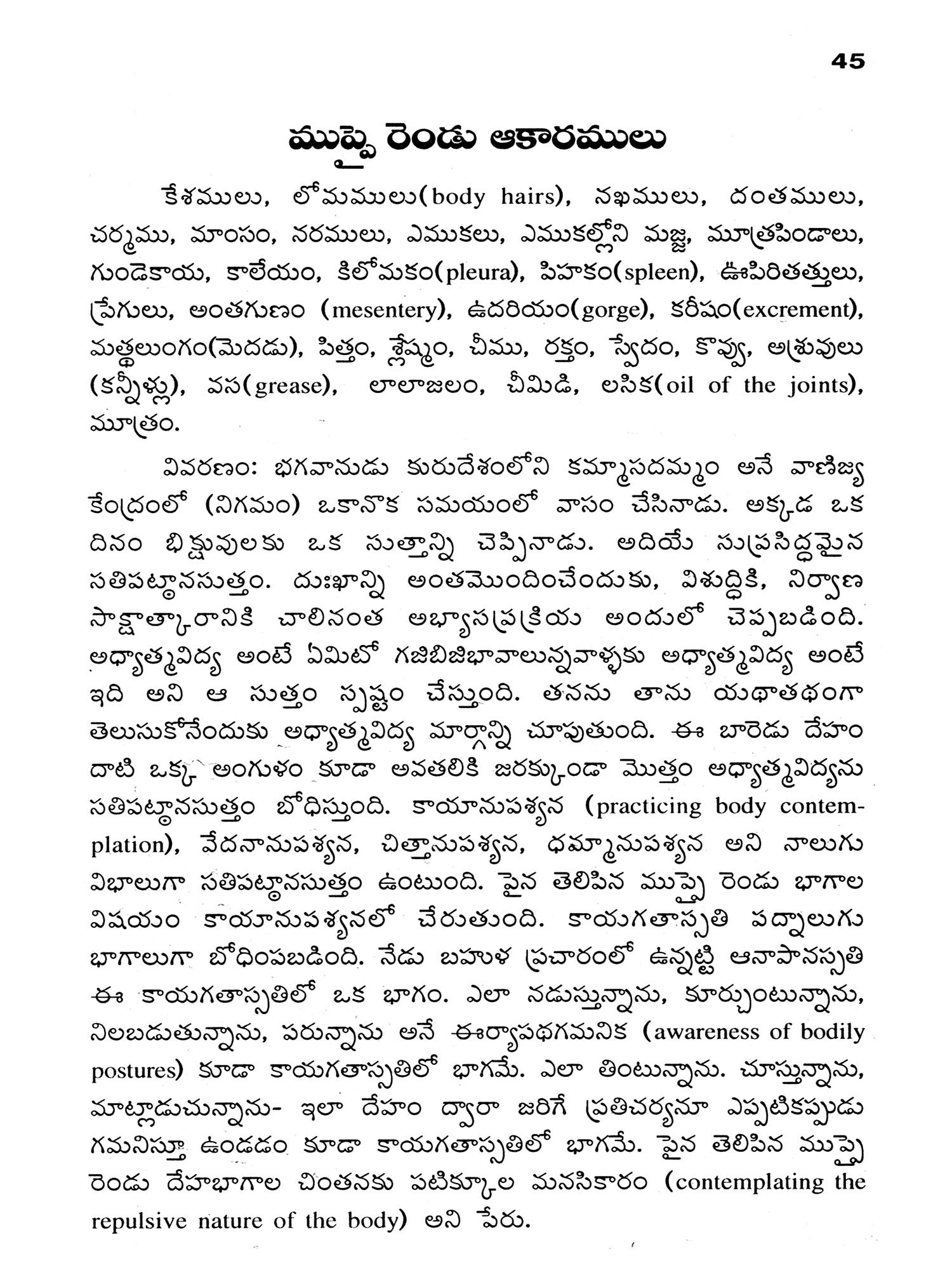 మహాస్మృతిప్రస్థాన సూత్రము: Mahasmritiprasthana Sutra (The Buddha's Great Discourse on Vipassana Meditation) Telugu