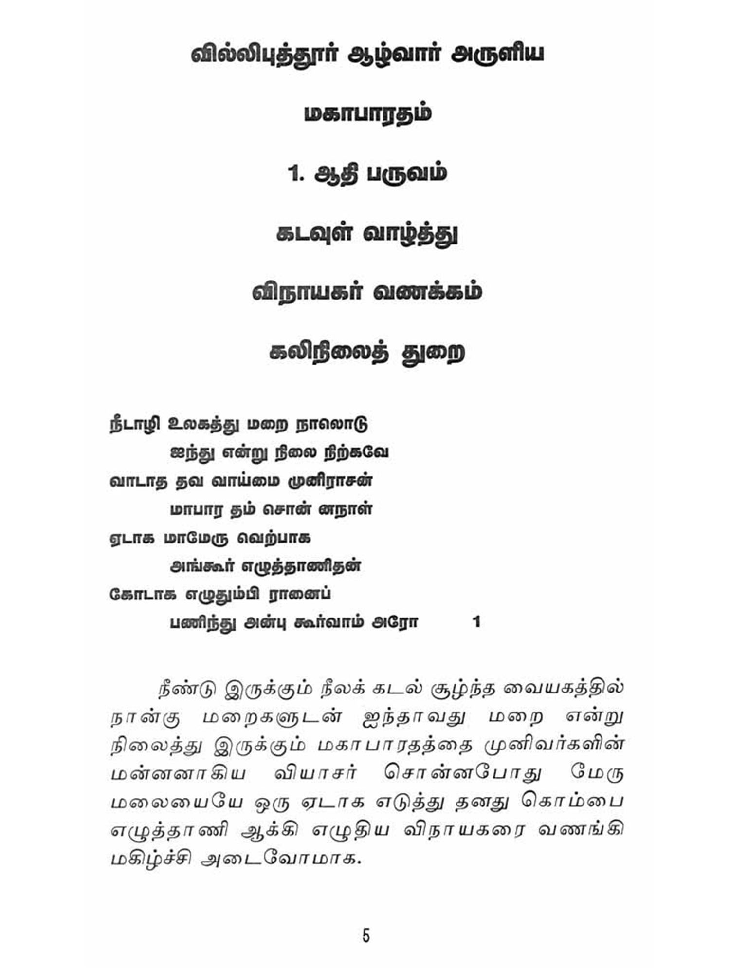 Mahabharata In Tamil (Set of 5 Volumes)