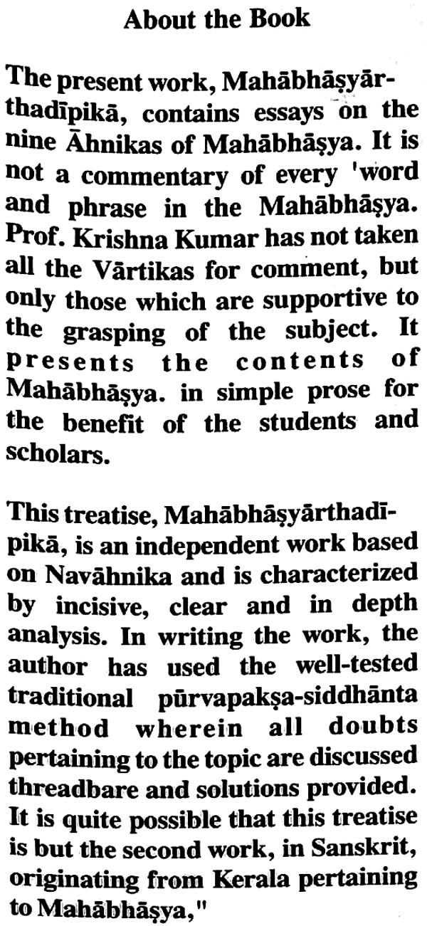 महाभाष्यार्थदीपिका: Mahabhasyartha Dipika (Part I)