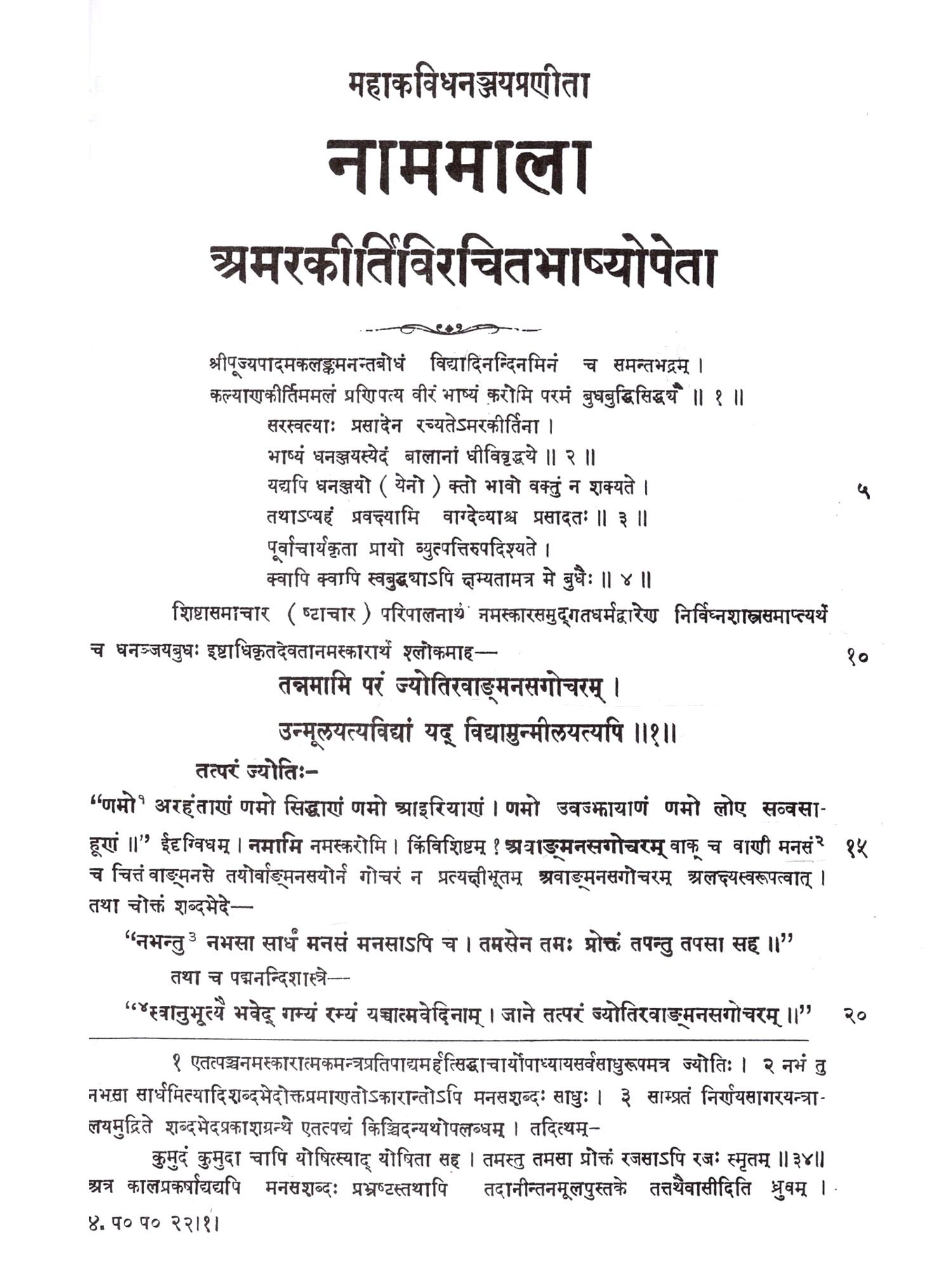 नाममाला: Mahakavi Dhananjaya with the Bhashya of Amarakirti and the Anekartha Nighantu and Ekakshari Kosha