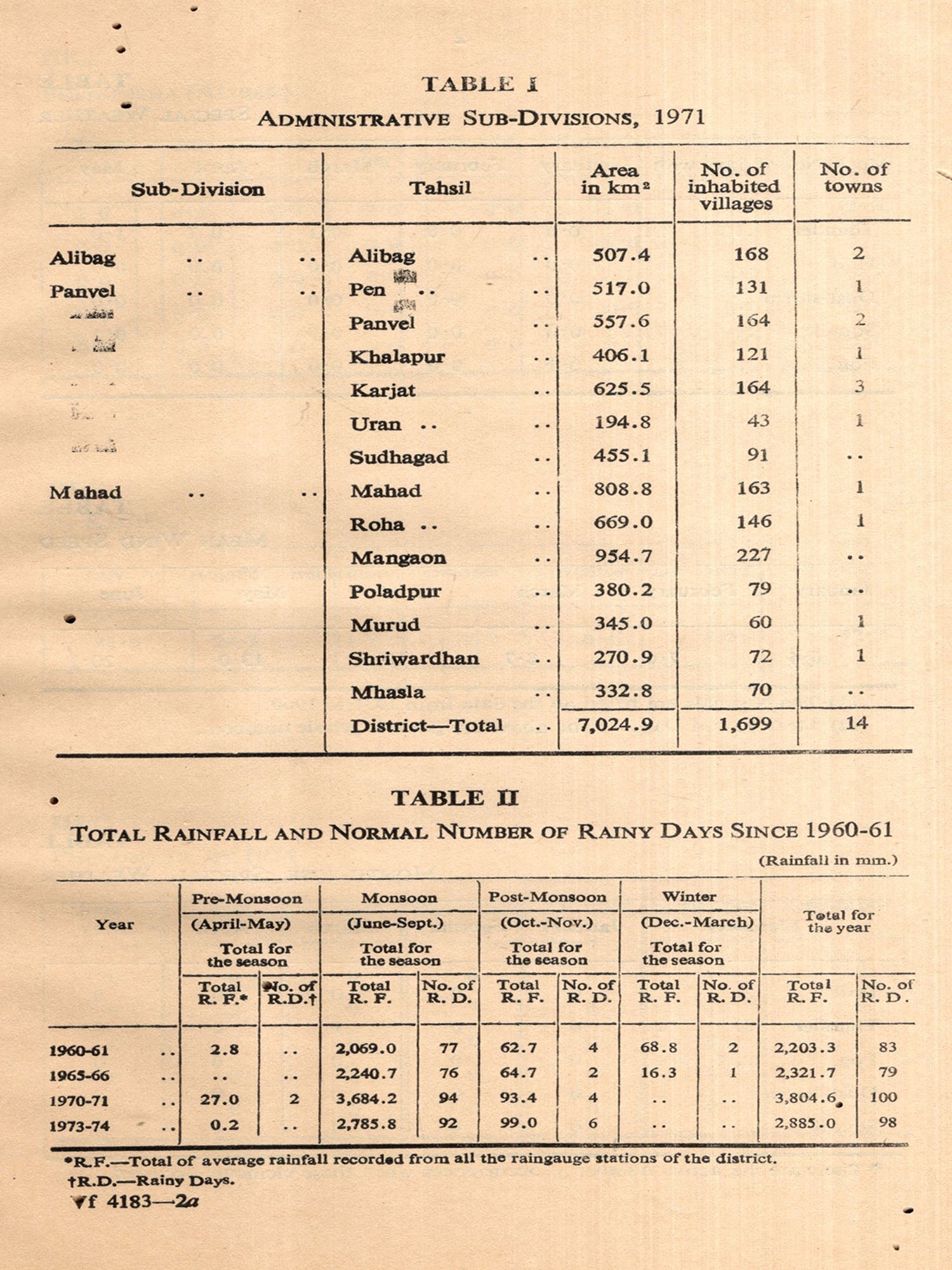The second revised edition of the Kulaba District Gazetteer was published in 1960 by the Gazetteers Department. The present volume is intended to supplement the information contained in the revised edition by recent statistics. Every attempt has been made to bring the statistical data as up-to-date as possible.