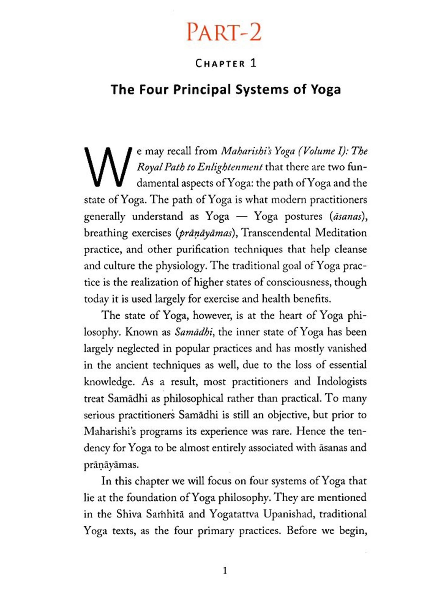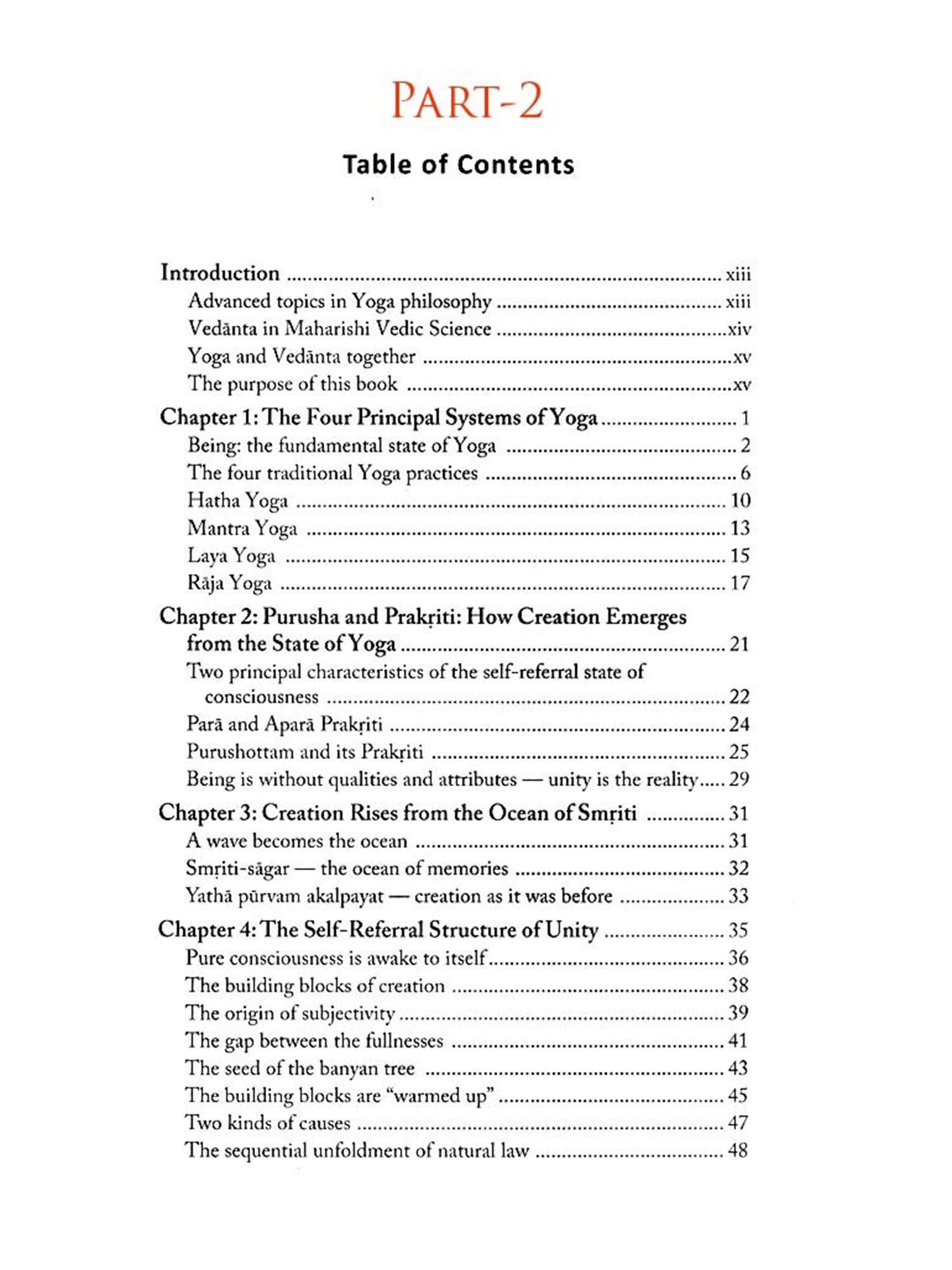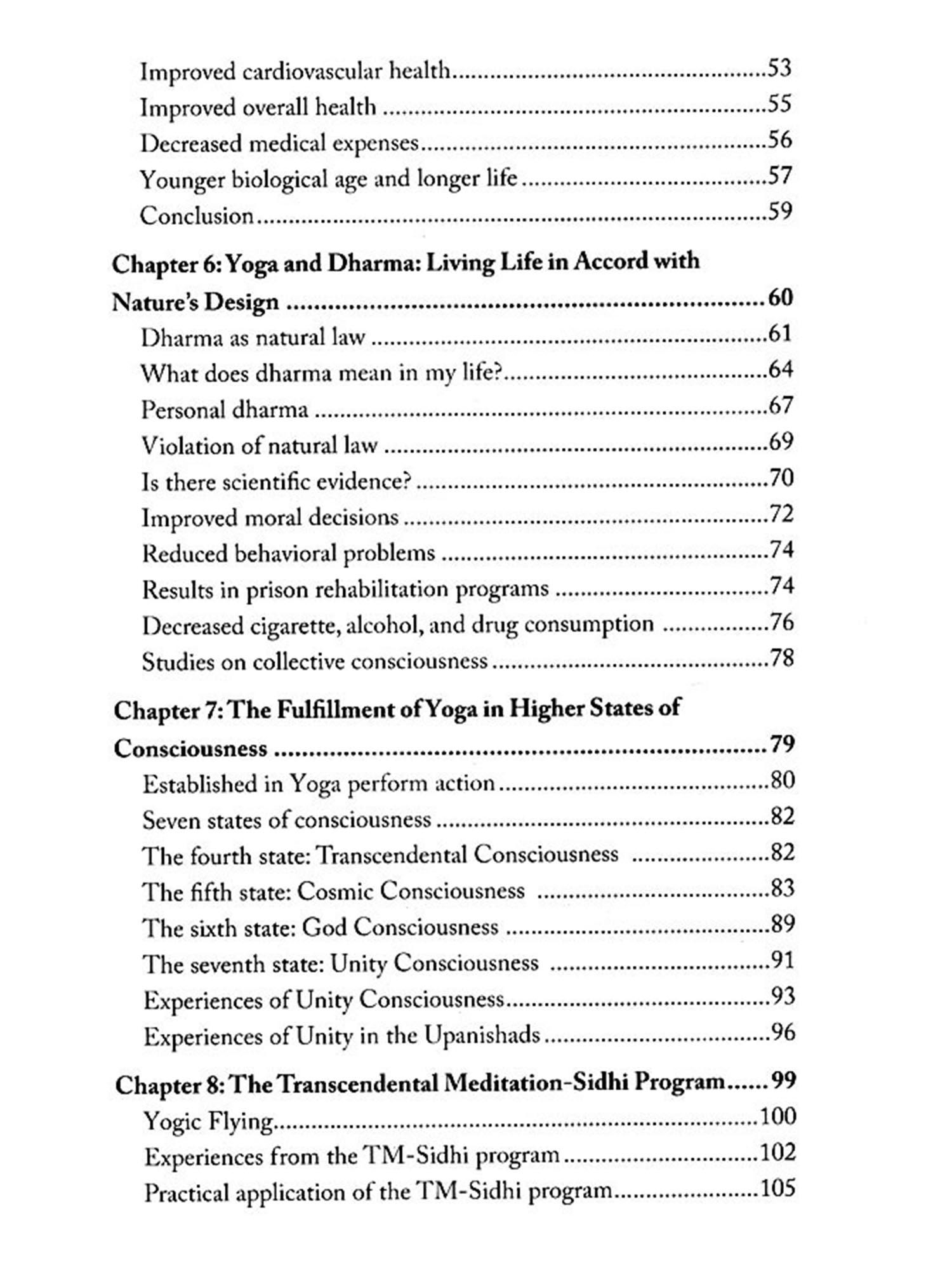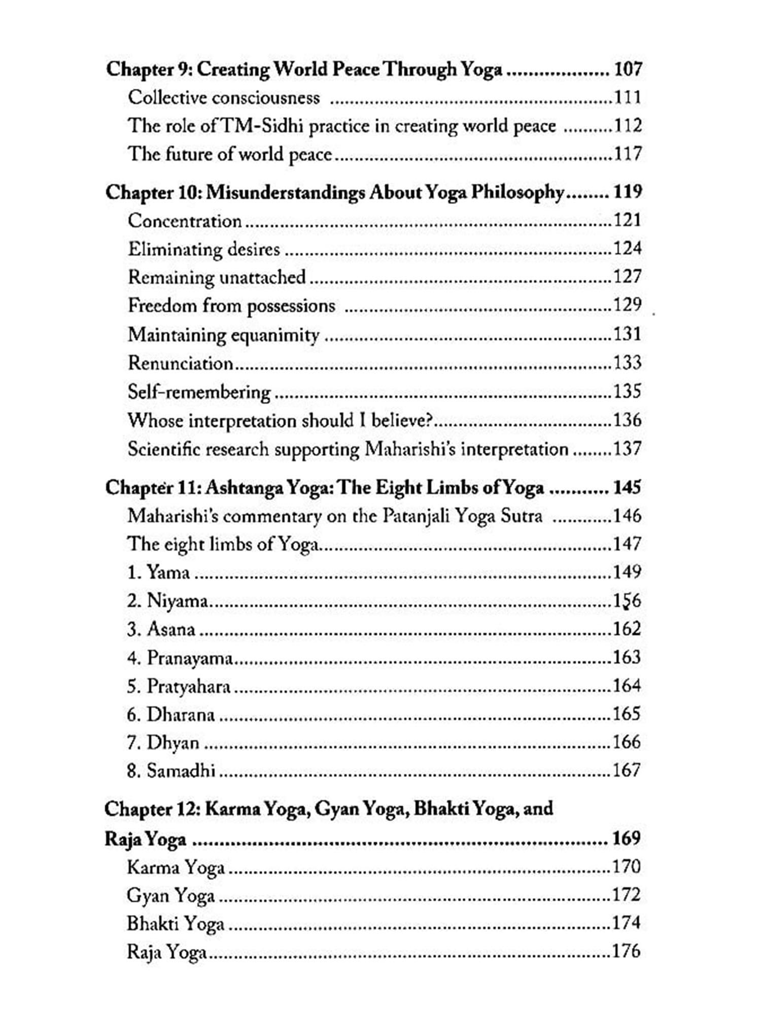 This accessible and far-reaching book explores Maharishi's teachings on yoga philosophy from multiple perspectives. It highlights yoga's profound practical benefits for individuals and societies while also addressing traditional aspects of yoga philosophy, such as siddhi performance, Karma Yoga, Jnana Yoga, Bhakti Yoga, Ashtanga Yoga, and the fulfillment of the four traditional goals of human life: Dharma, Artha, Kama and Moksha.