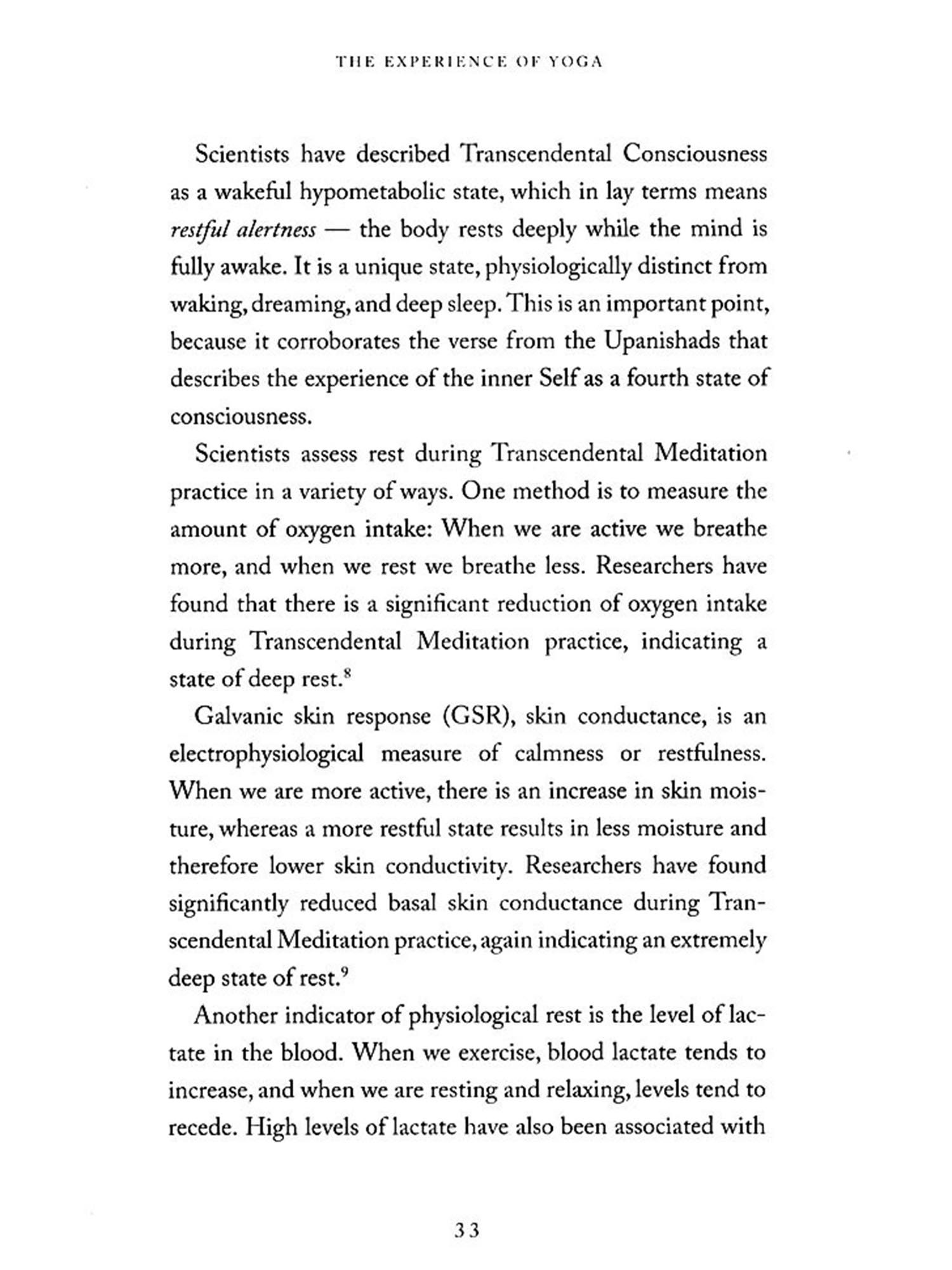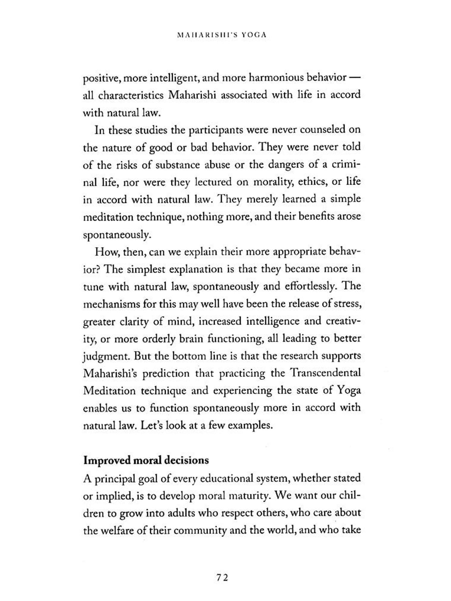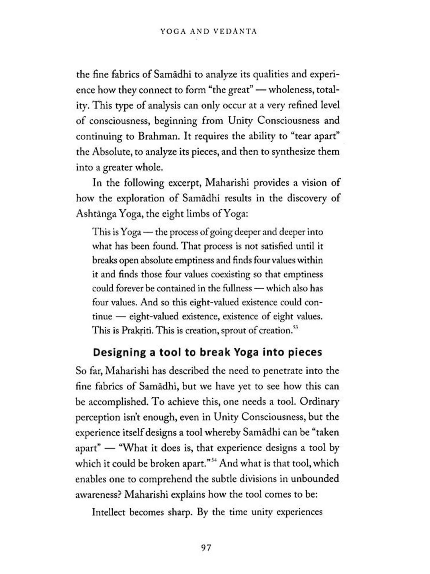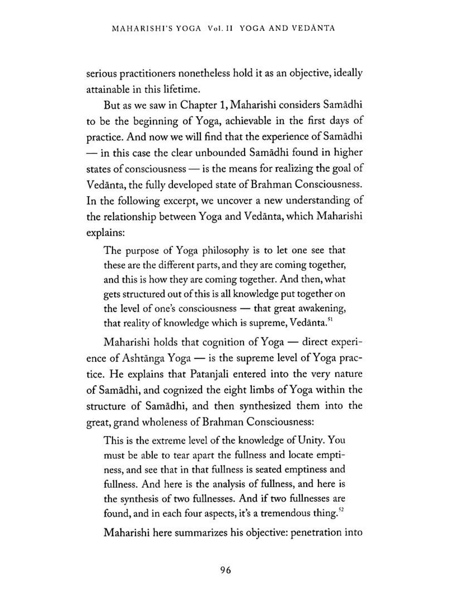 This accessible and far-reaching book explores Maharishi's teachings on yoga philosophy from multiple perspectives. It highlights yoga's profound practical benefits for individuals and societies while also addressing traditional aspects of yoga philosophy, such as siddhi performance, Karma Yoga, Jnana Yoga, Bhakti Yoga, Ashtanga Yoga, and the fulfillment of the four traditional goals of human life: Dharma, Artha, Kama and Moksha.