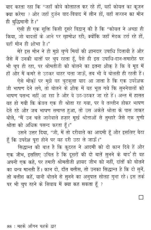 यह सब मैं ही कह रहा हूँ, और अपने कानों सुन भी रहा हूँ, पर अपनी यह बात आप ही सुनकर मुझे एक अजब अटपटी-सी लग रही है, तो औरों को भी लगेगी ही; पर क्या बताऊँ मुझे लगता है कि इस अटपटी बात में एक गम्भीर सूत्र और समाज का रहस्य छिपा है जिसे जानकर हम बहुत कुछ जान सकते हैं।