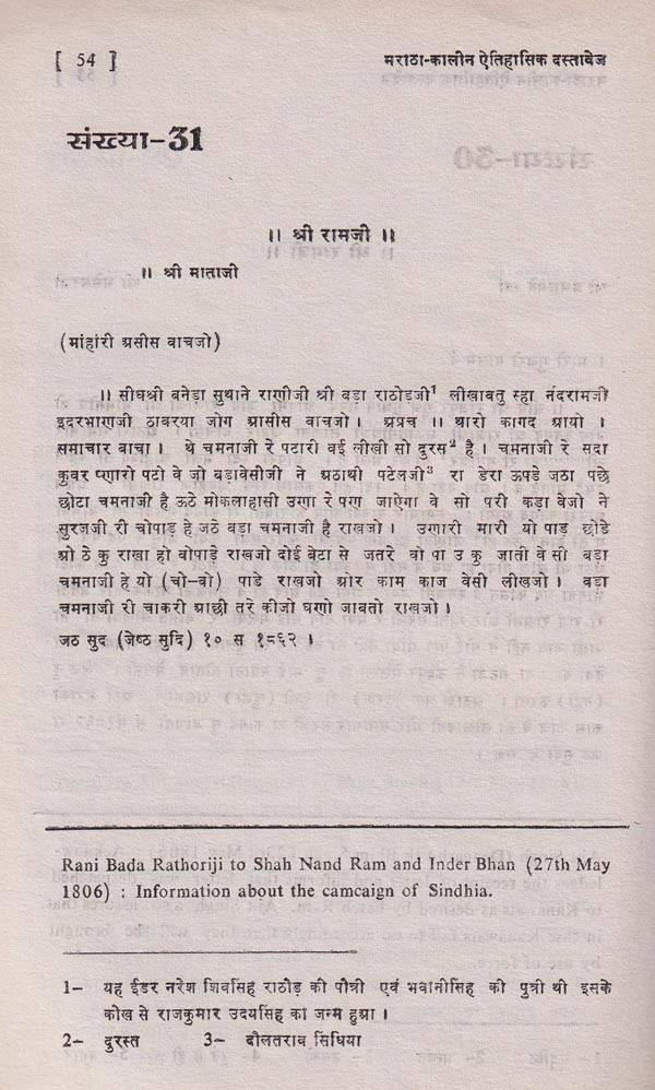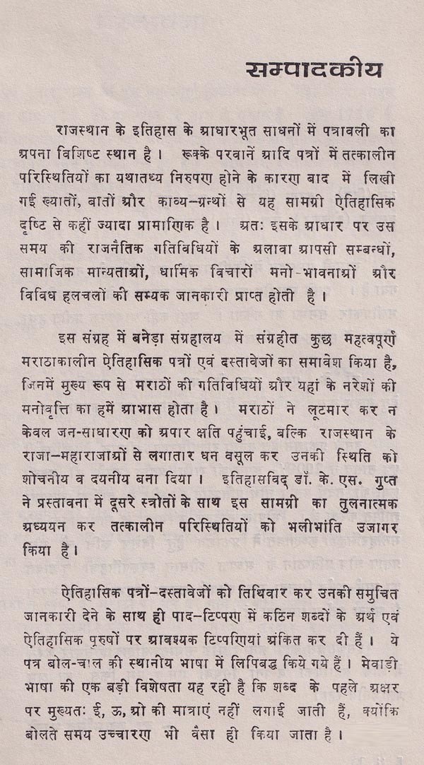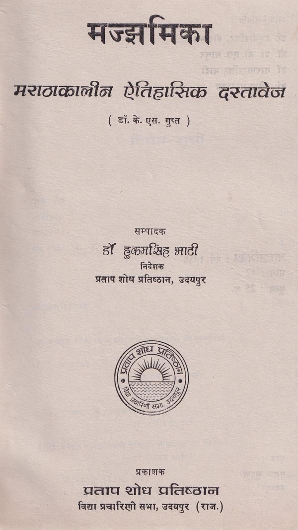 मज्झमिका: मराठाकालीन ऐतिहासिक दस्तावेज- Majjhmika: Historical Document of the Maratha Period in Rajasthani (An Old and Rare Book)