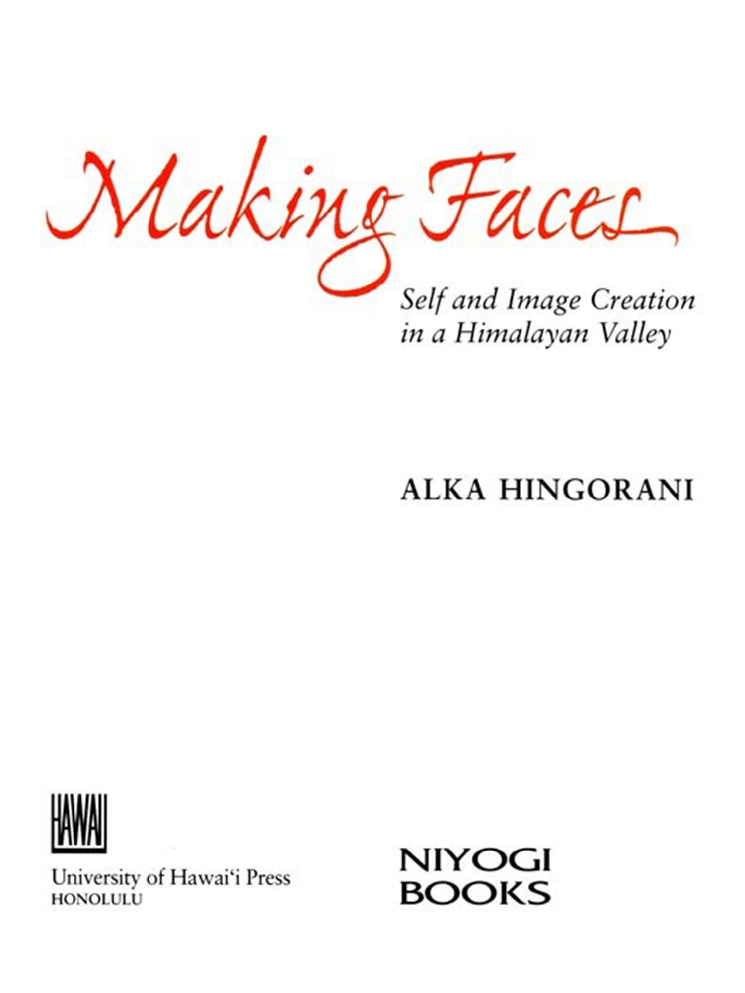 Making Faces tells the story of these god-makers, the gods they make, and the communities that participate in the creative process and its accompanying rituals. For the author, the process of learning about Himachal, its art and artists, the people who make their home there, involved pursuing itinerant artists across difficult mountainous terrain with few, if any, means of communication between the thinly populated, high-altitude villages. The harsh geography of the region permits scant travel, and the itinerant artisan forms a link to the world outside; villages that commission mobras are often populated by a small number of families. Alka Hingorani evokes this world in rich visual and descriptive detail as she explores the ways in which both object and artisan are received and their identities transformed during a period of artis-tic endeavor.