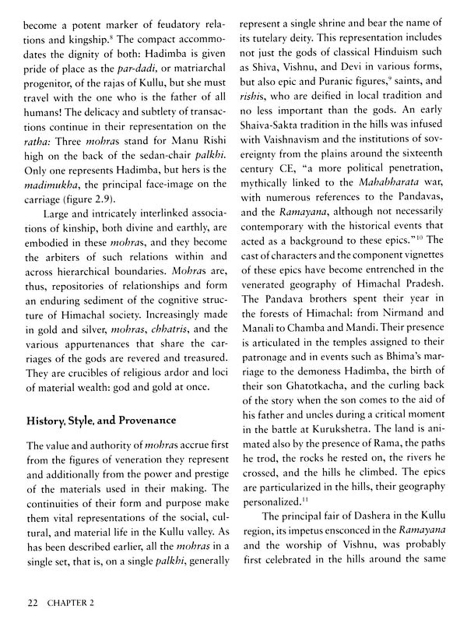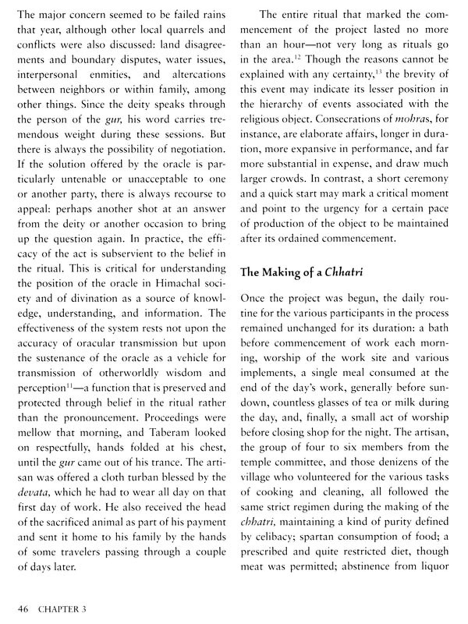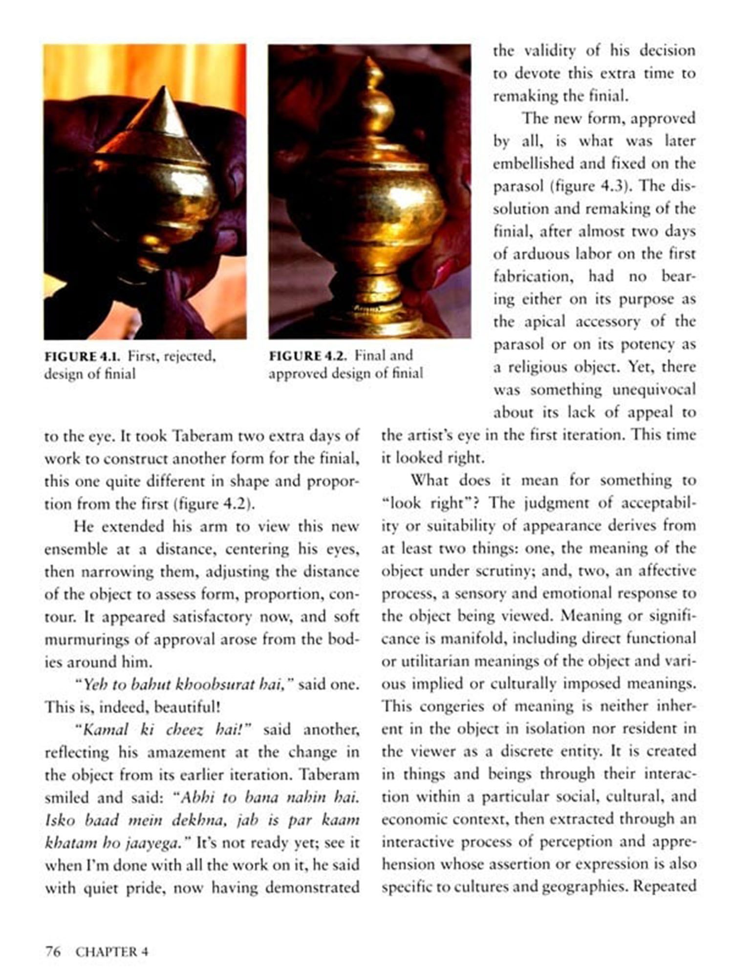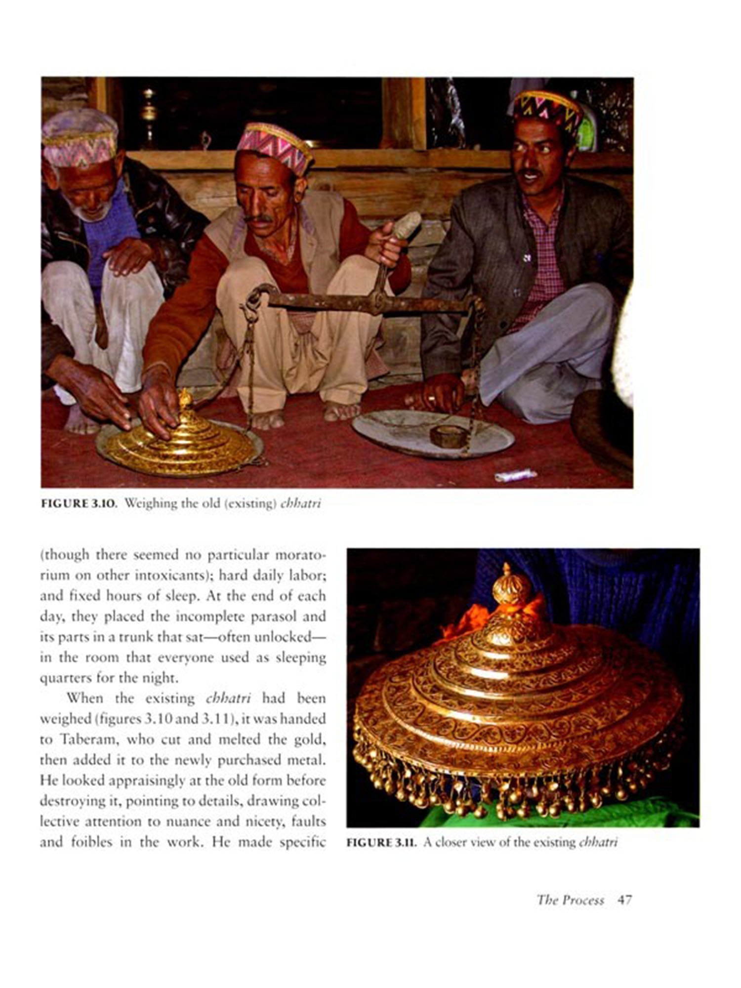 Tabe aberam Soni, Labh Singh, Amar Singh, and other artists live and work in the hill villages of the lower Himalayas in Himachal Pradesh, India. There they fashion face-images of deities (mohras) out of thin sheets of precious metal. Commissioned by upper-caste patrons, the objects are cultural embodiments of divine and earthly kinship. As the artists make the images, they also cross caste boundaries in a part of India where such differences still determine rules of contact and correspondence, proximity and association. Once a mohra has been completed and consecrated, its maker is not permitted to touch it or enter the temple in which it is housed; yet during its creation the artist is sovereign, treated deferentially as he shares living quarters with the high-caste patrons.