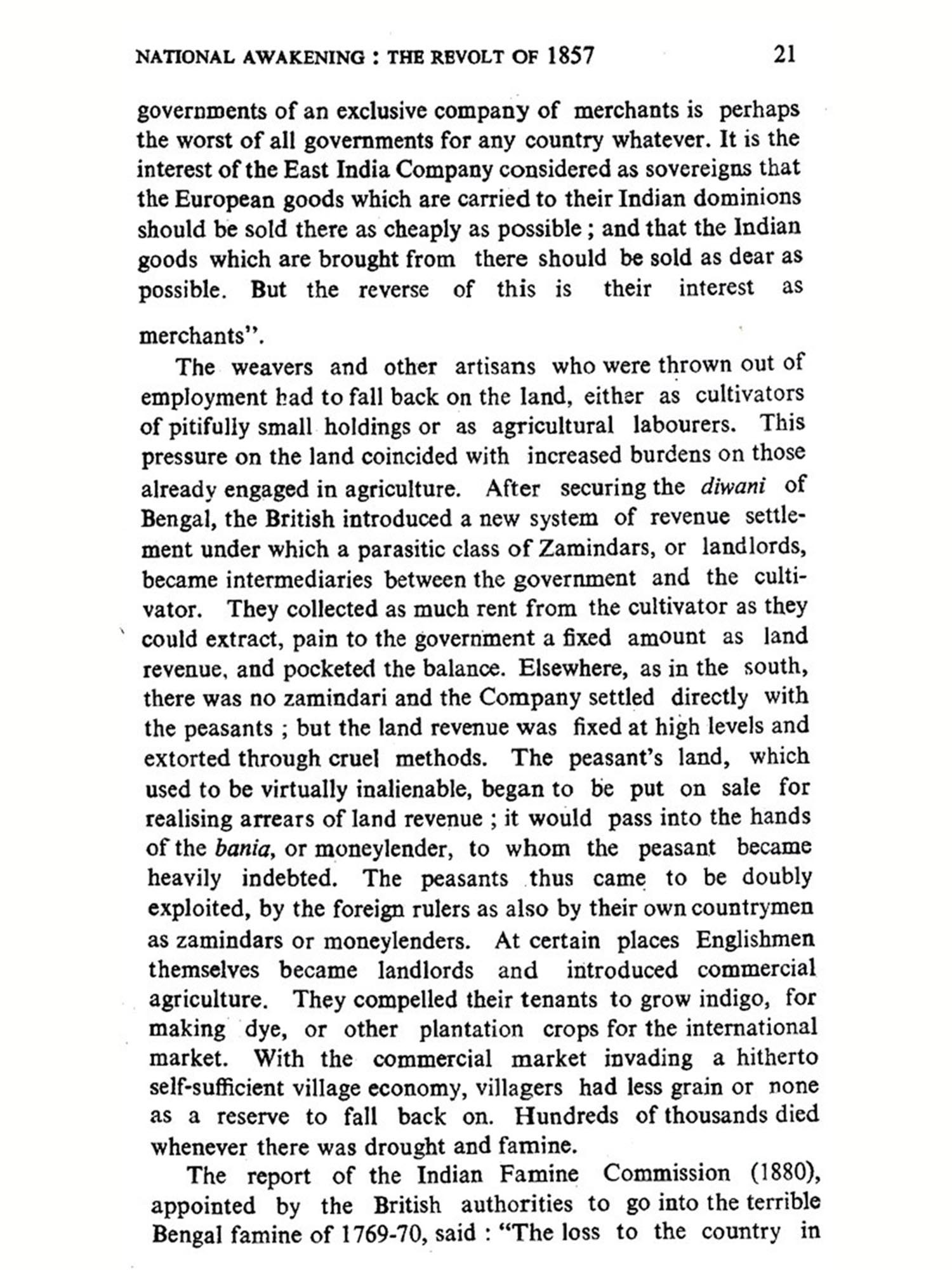 1774. The national awakening which began in the 19th century was characterized by assimilation of the good features of the science and philosophy of the West, to which access was provided by English education, alongside pride in India's own heritage and readiness to purge it of the accretions of superstitious practice. This constrictive response, unaffected by the abortive Uprising of 1857, led on to the formation of the Indian National Congress, the heightened political consciousness reflected in the agitation against the partition of Bengal and finally to the nonviolent mass movement for independence under the leadership of Mahatma Gandhi.