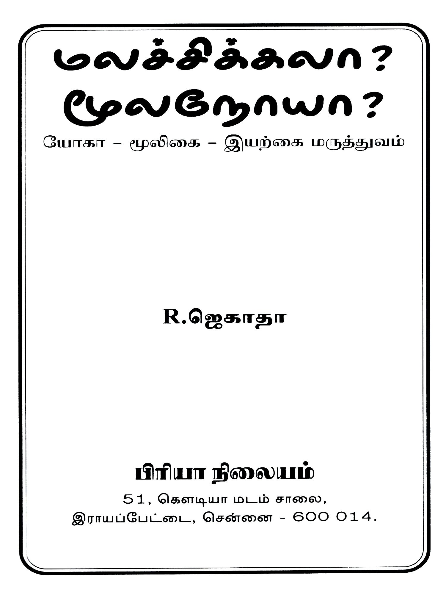 செலவில்லாத சுலப வைத்தியம்- Selavillatha Sulabha Vaithiam- Simple Indigenous Herbal Remedies For All Ailments (Tamil)
