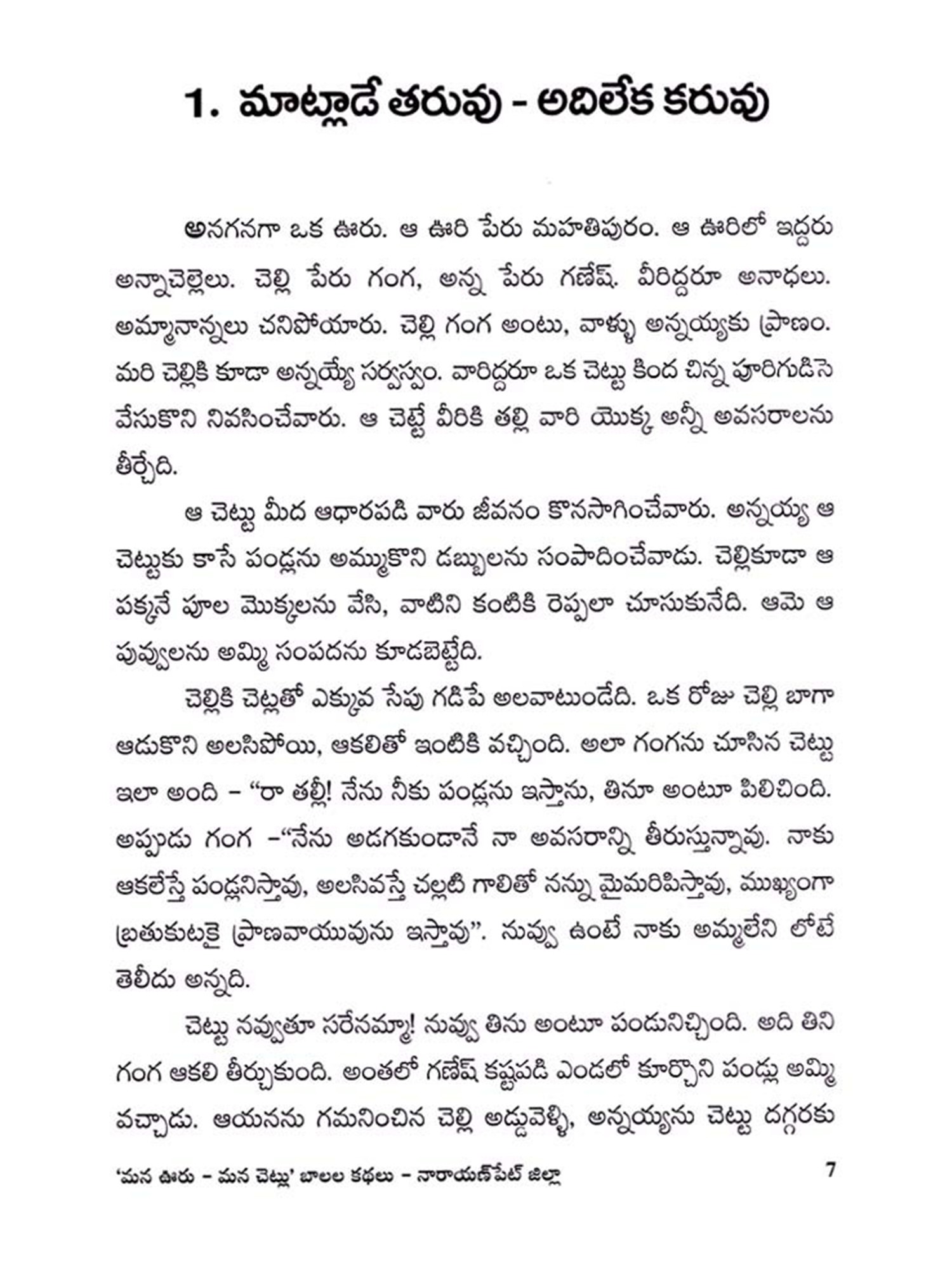 మన ఊరు - మన చెట్లు బాలల కథలు: Mana Uru - Mana Cetlu Balala Kathalu- Mahabubnagar District (Telugu)