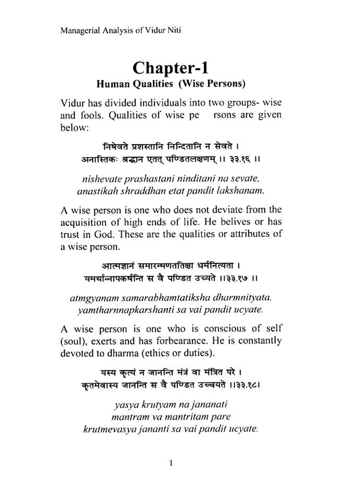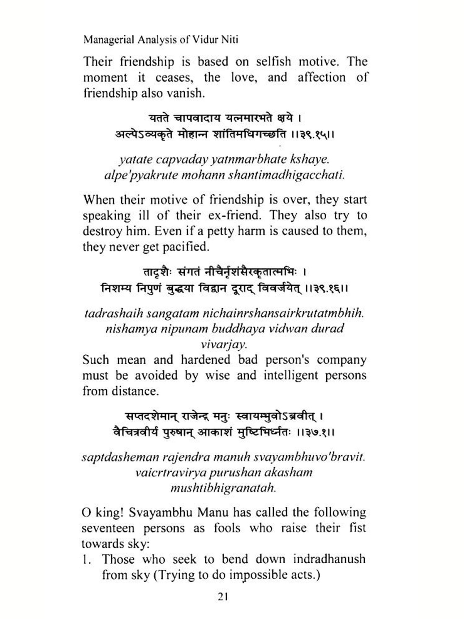 The 588 shlokas in Vidur Niti have been thematically classified into various categories, including: