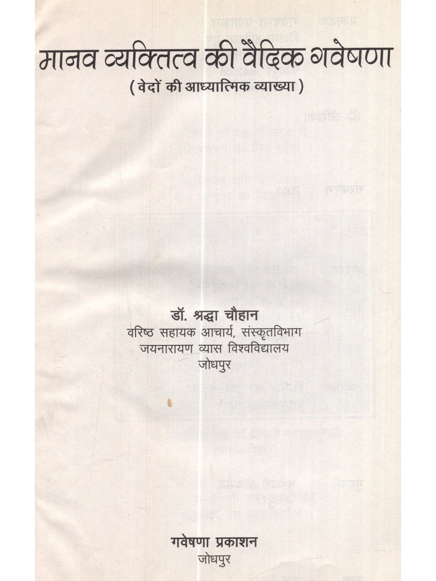 मानव व्यक्तित्व की वैदिक गवेषणा (वेदों की आध्यात्मिक व्याख्या): Manav Vyaktitva Ki Vaidika Gavesana (Vedom Ki Adhyatmika Vyakhya)- An Old and Rare Book