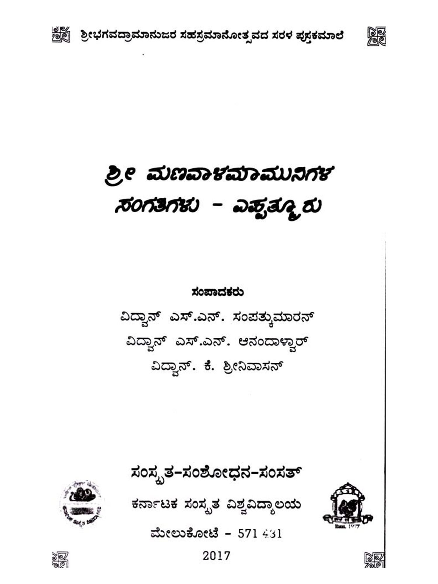 ಶ್ರೀರಾಮಾನುಜಾಚಾರ್ಯರು: ಜೀವನ ಚಿತ್ರ ಮತ್ತು ಸಿದ್ಧಾಂತ- Sri Ramanujacharyaru: A Brief Life Sketch and Teachings of Sri Ramanaujacharya (Kannada)