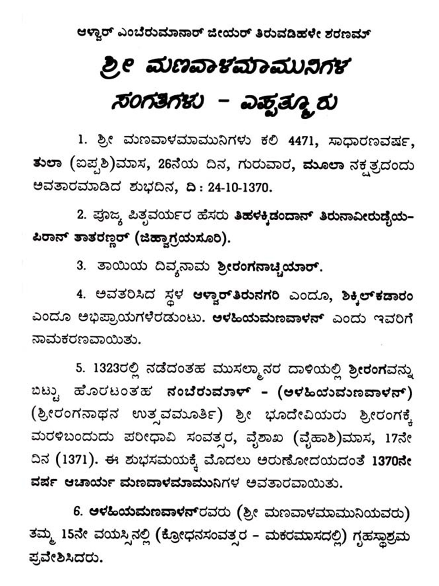 ಶ್ರೀ ಯಾಮುನಾಚಾರ್ಯರು ಮತ್ತು ಶ್ರೀ ರಾಮಾನುಜಾಚಾರ್ಯರು: Sri Yamunacharya and Sri Ramanujacharya (Kannada)
