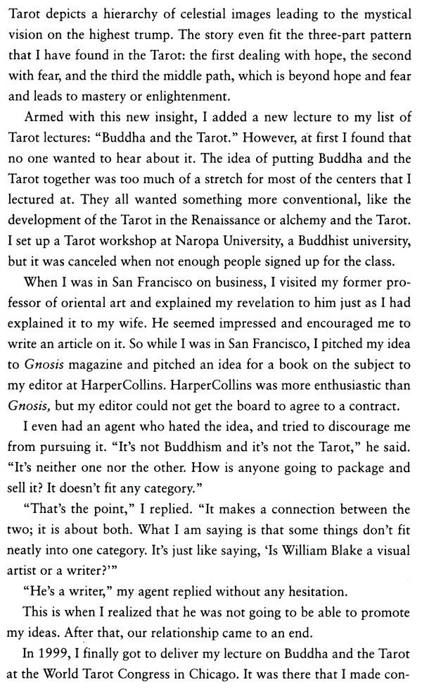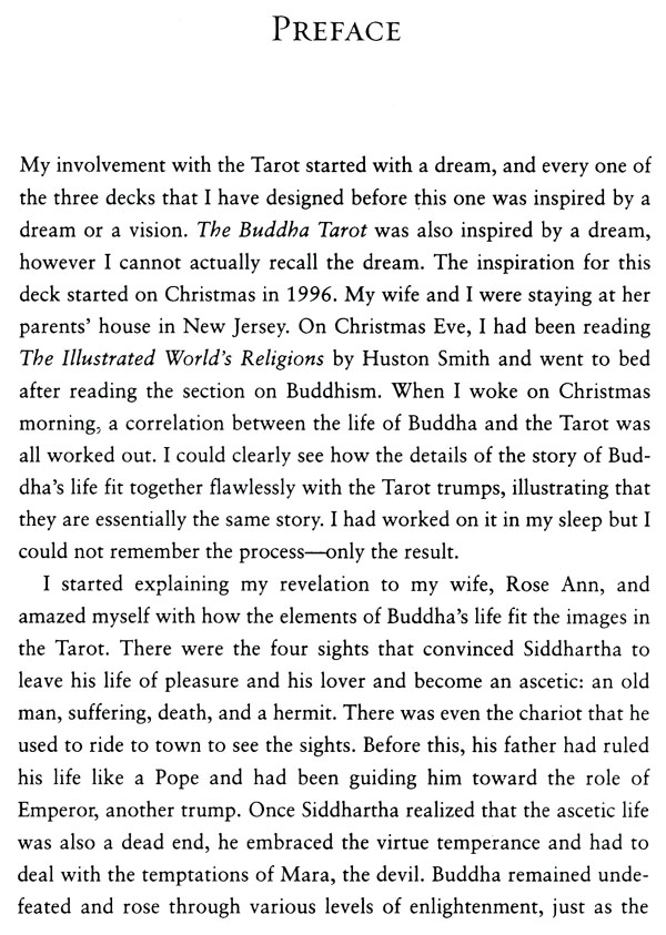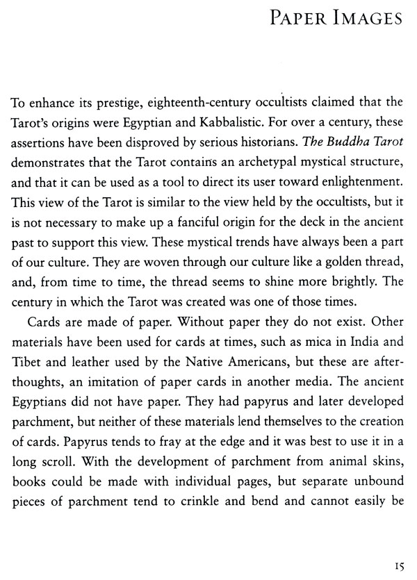 The author also delves deeply into Western mysticism and philosophy, showing how Platonic and Neoplatonic thought influenced centuries of Westem magic and mysticism. He then examines Buddhism from a Westerner's point of view, including a description of the Buddha's life and an in-depth look at the themes represented in traditional Tarot and their parallels in Buddhist teachings. The Buddha Tarot Companion also includm a detailed description of each card and its symbolism, and how each card in this unique deck relates to the Tarot tradition.