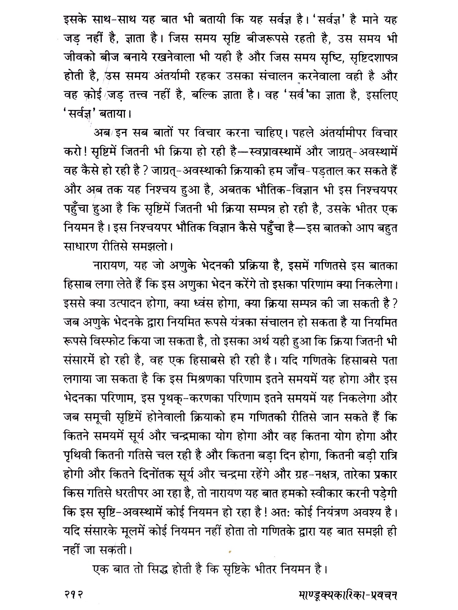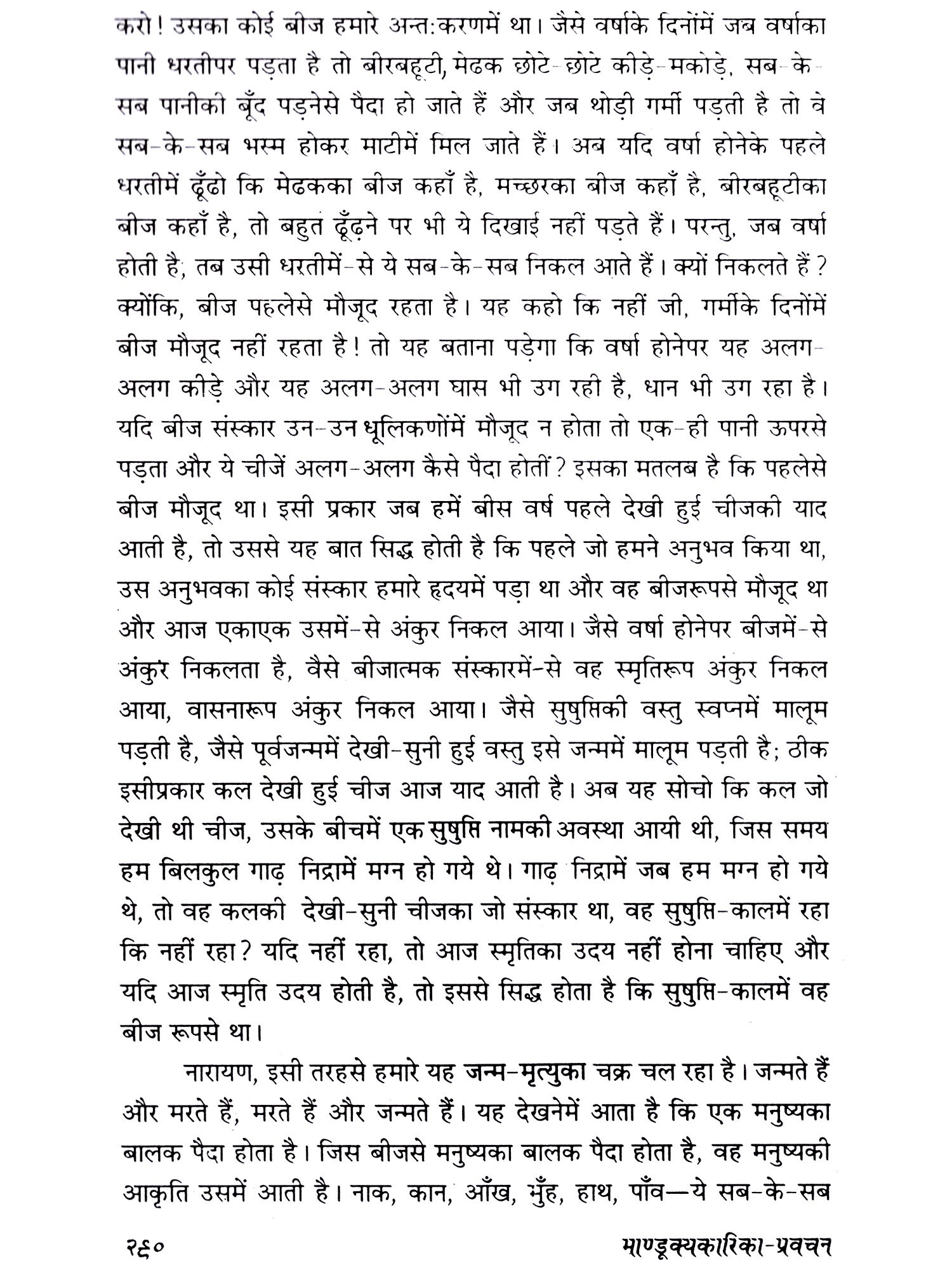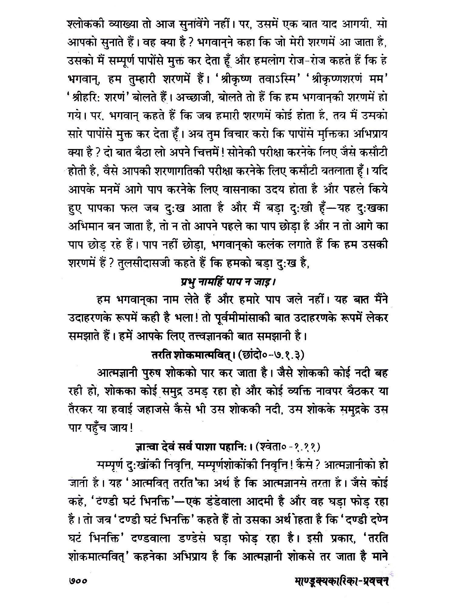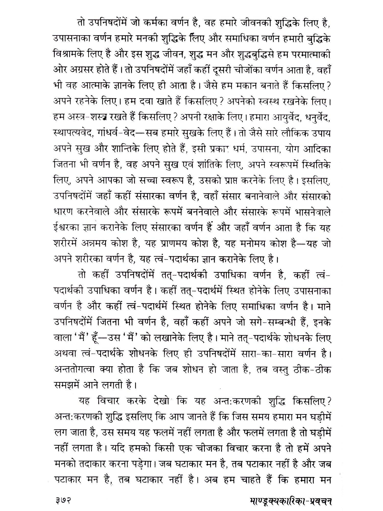 माण्डूक्य अथर्ववेदकी उपनिषद्‌में केवल बारह मन्त्रोंमें ओंकारका अभिधान-प्रधान तथा अभिधेय-प्रधान दो प्रकार का निर्देश दिया गया है। इस उपनिषद्‌के मन्त्रद्रष्टा ऋषि मण्डूकऋषिके वंश या गोत्रमें हुए इसलिए माण्डूक्य कहे जाते हैं। मण्डूक कहते हैं मेढक को। मेढक चलता नहीं, उछलता-कूदता और उछलकर अपने लक्ष्य पर पहुँच जाता है। इसी प्रकार मनुष्य शरीरमें बैठा जीवात्मा उछलकर एकबारमें परमात्माके पास पहुँच जायेगा, इसे कहते हैं मण्डूकप्लुति न्याय या मण्डूक न्याय। अब देखिये कि हमें परमात्माकी प्राप्ति के लिए किधर जाना है ? आगे तो बस्ती है, संसार है। उसे छोड़कर पीछे जाना है, माने यह निवृत्तिकी रीति है, सामने बढ़ने-प्रवृत्तिकी रीति पर ही है परमात्माको पानेकी एक शैली - माण्डूक्य उपनिषद् । अतः आओ, हम उस परमात्माको ढूँढ़ें!