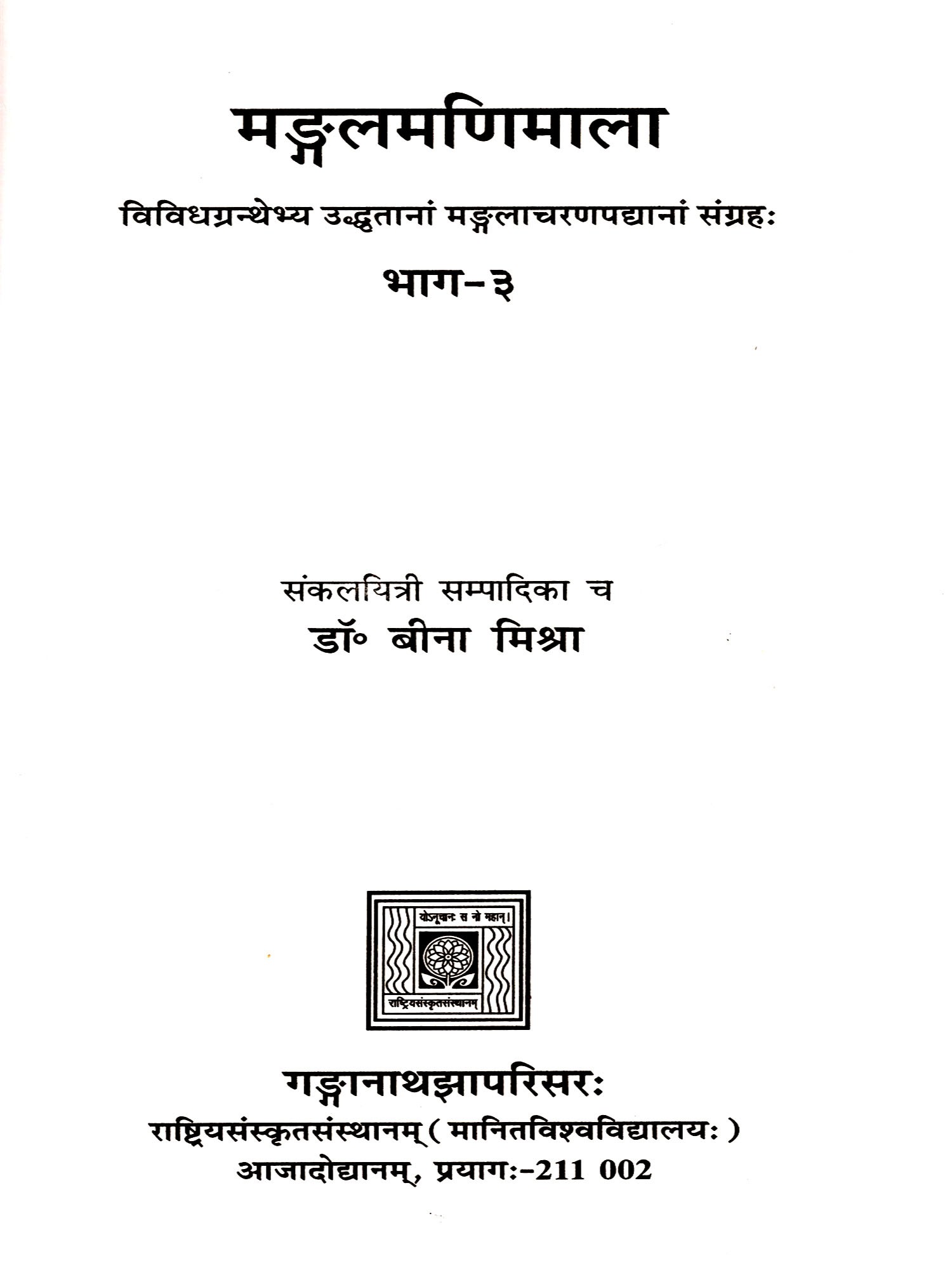 मङ्गलमणिमाला: Mangalamanimala- Part-III (A Collection of Mangalacarana-Verses from Various Sanskrit Works)