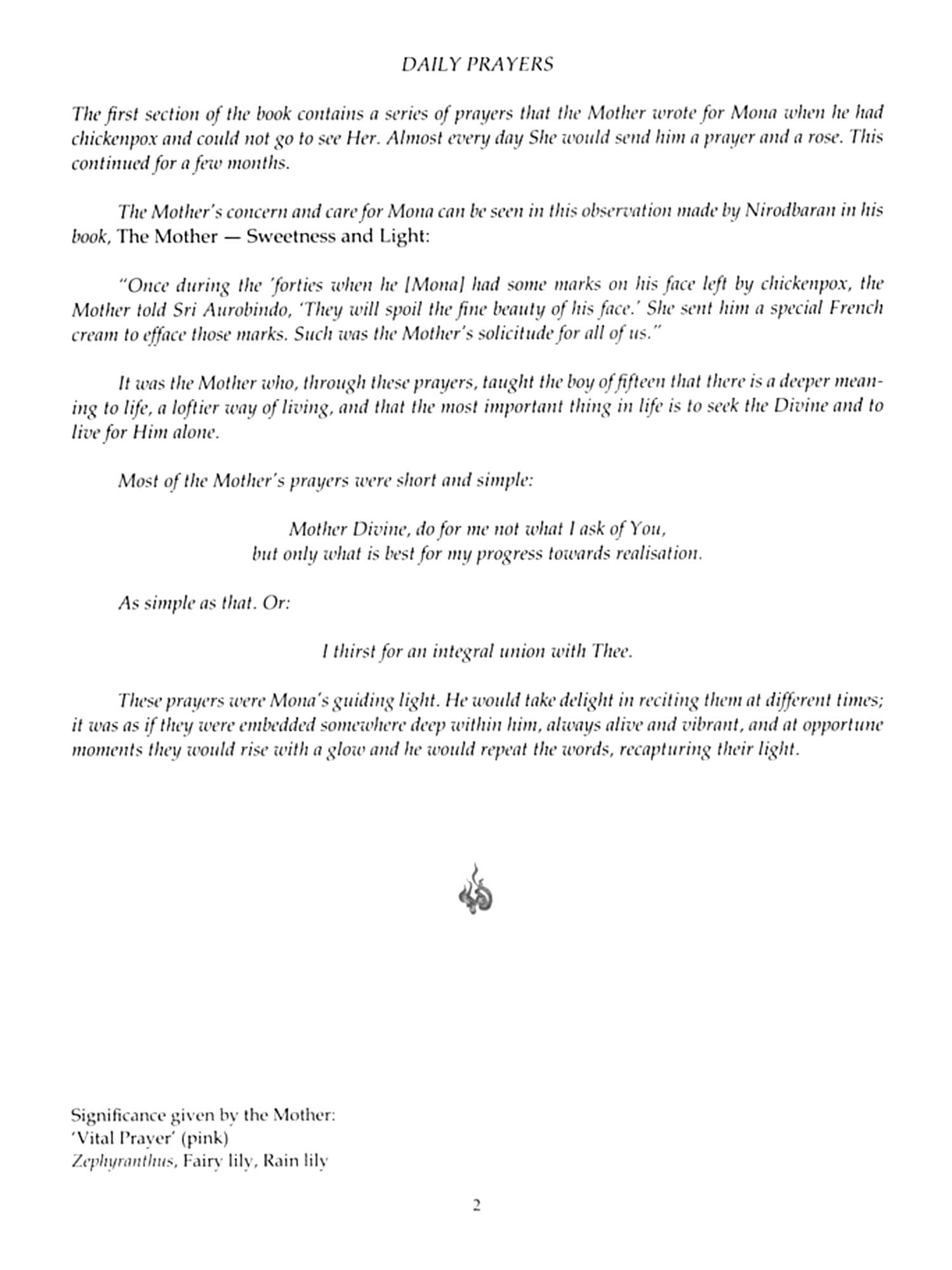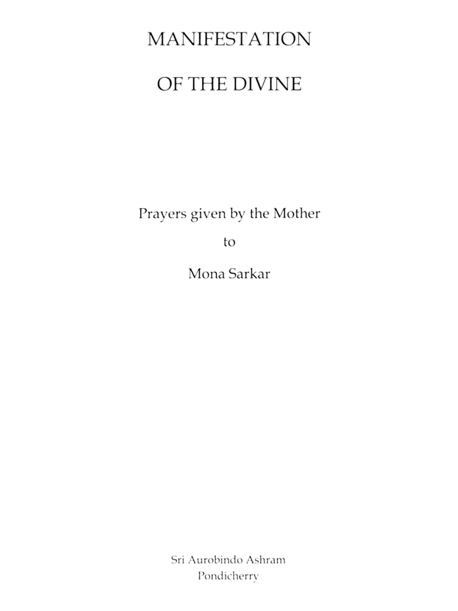 This book brings together about a hundred prayers given by the Mother to Mona Sarkar. They were written on various occasions from 1949 to 1973.