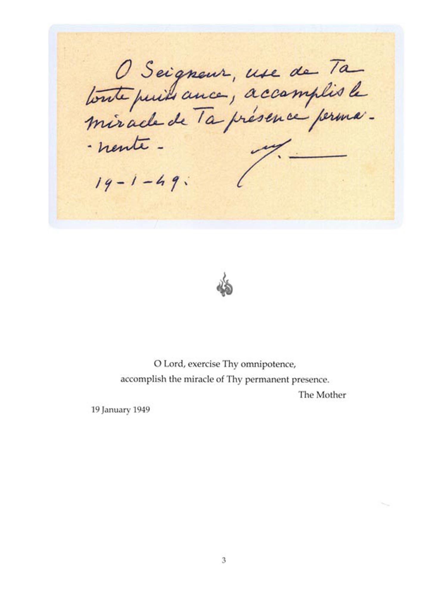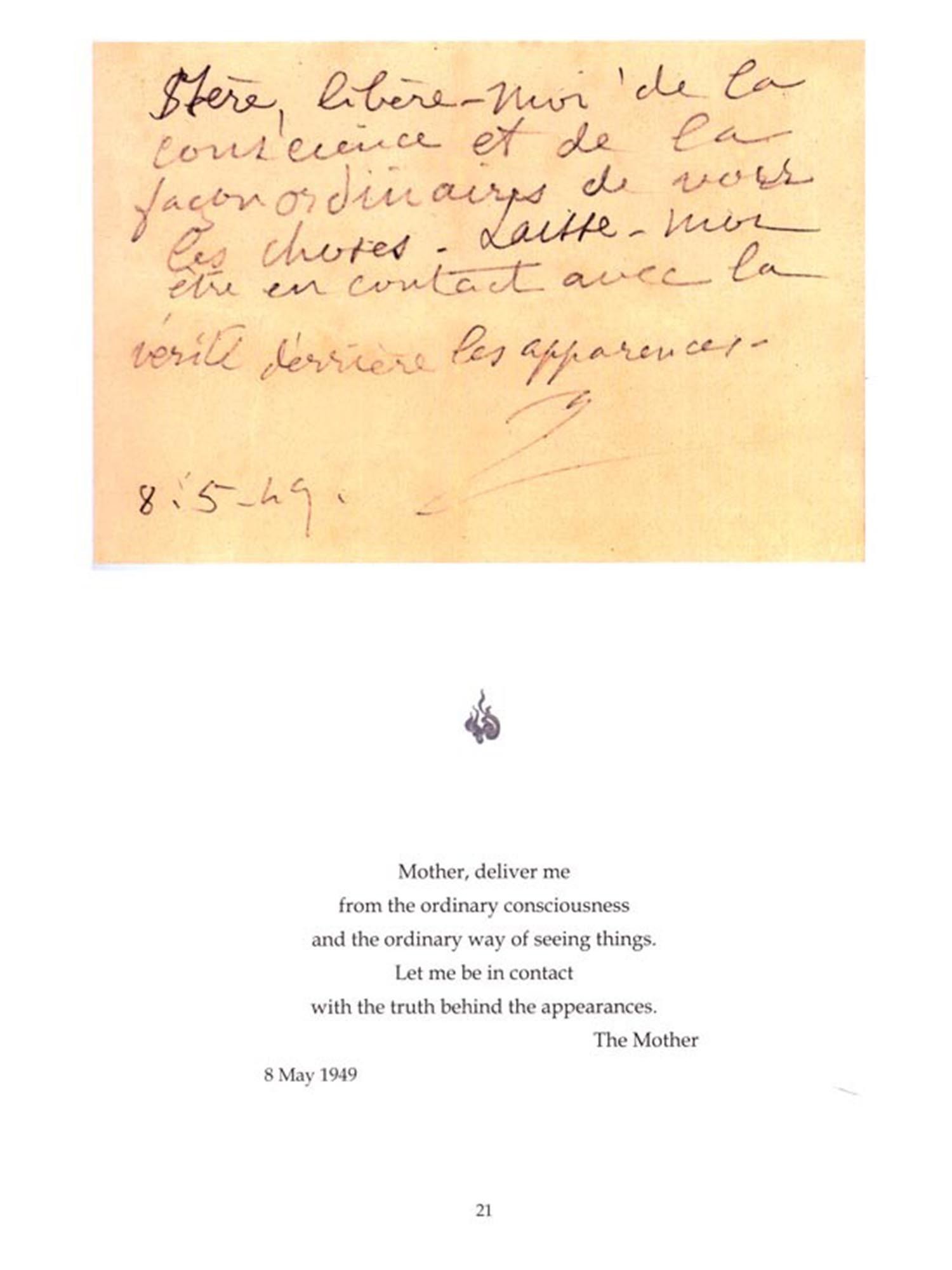 Mona's correspondence with the Mother, his conversations with Her, and the prayers She wrote for him were all in French.