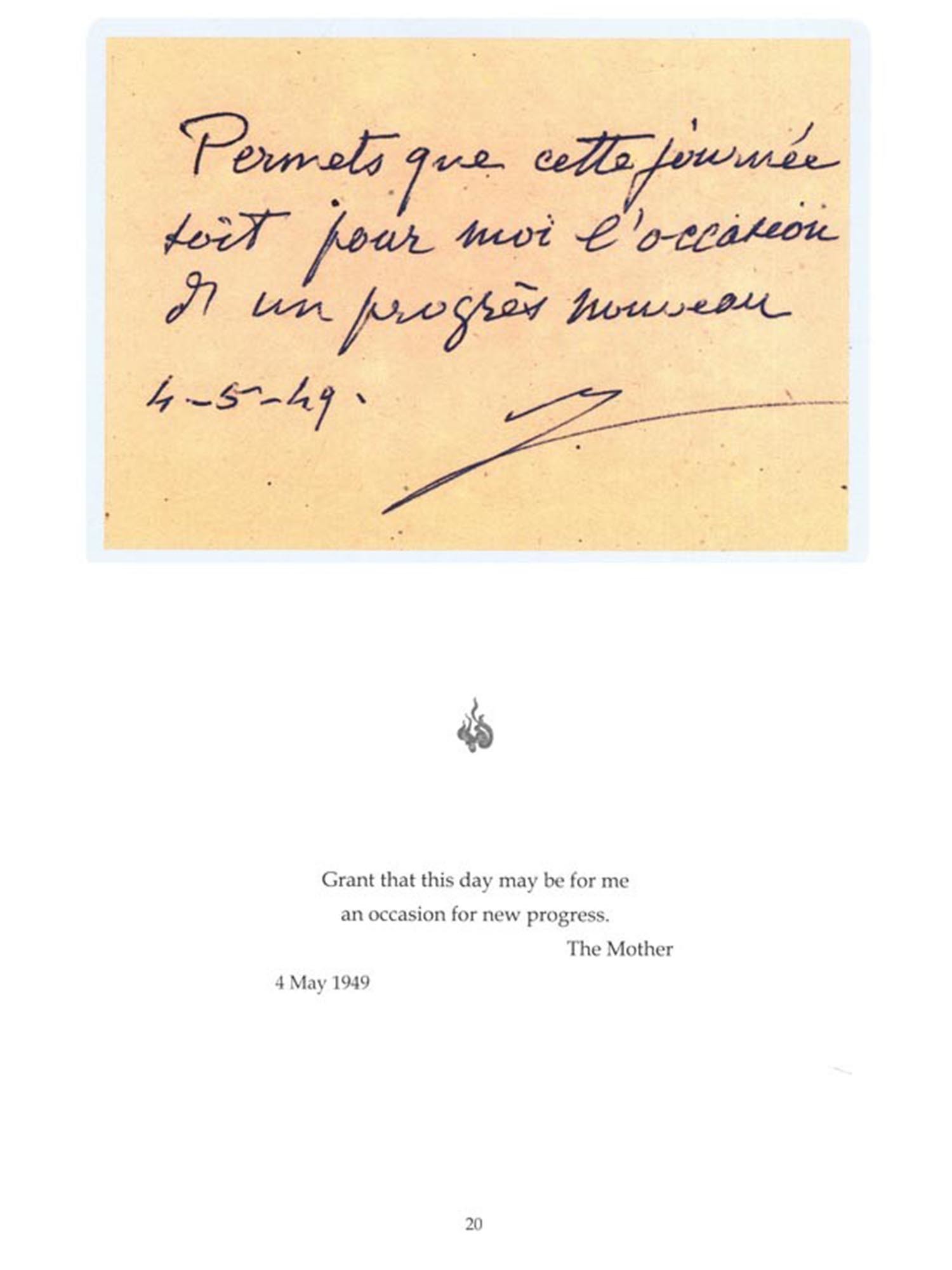 Mona began writing to the Mother in 1950, putting down his questions in a notebook. Below his questions, She wrote Her replies. This continued till 1973.