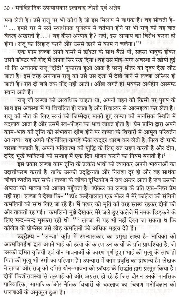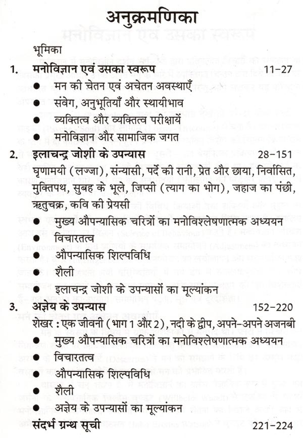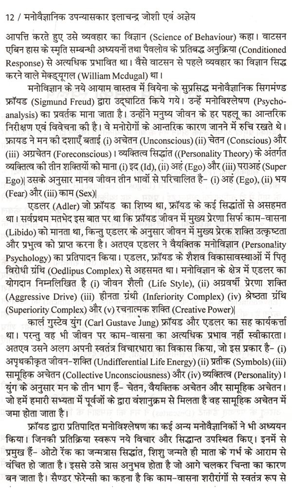 वैसे मेरा अनुसंधानकार्य इस क्षेत्र में प्रथम नहीं है। सर्वप्रथम डॉ० देवराज उपाध्याय ने आधुनिक हिन्दी कथा-साहित्य और मनोविज्ञान शोध-ग्रंथ प्रस्तुत किया, परंतु विषय की विशदता एवं विदेशी साहित्य के विस्तृत संदर्भों एवं विवेचन बाहुल्य के कारण केवल छुट-पुट विश्लेषण एवं व्याख्याएँ संभव हो सकी हैं, उसमें क्रमिक आकलन का अभाव खटकता है। इसी क्रम में डॉ० धनराज मानधाने का 'हिन्दी के मनोवैज्ञानिक उपन्यास' महत्वपूर्ण है, लेकिन उसमें विचार एवं दर्शन अछूते रह गये हैं।