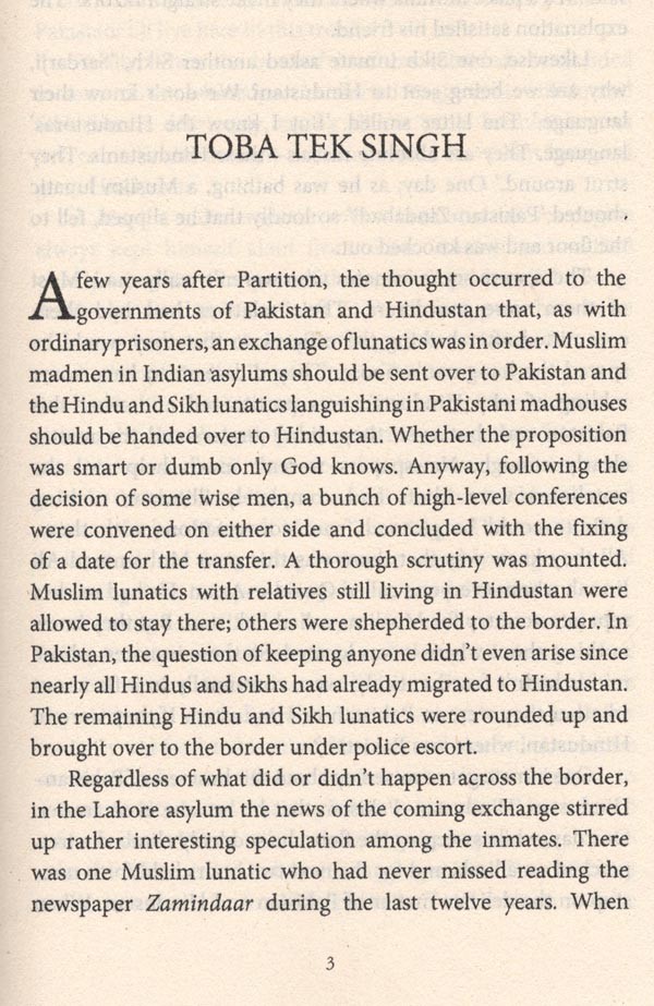 SAADAT HASAN MANTO is the most widely read short-story writer in Urdu. In his time, he was also the most controversial. A pre-eminent practitioner of the genre, he produced twenty-two collections of short stories.