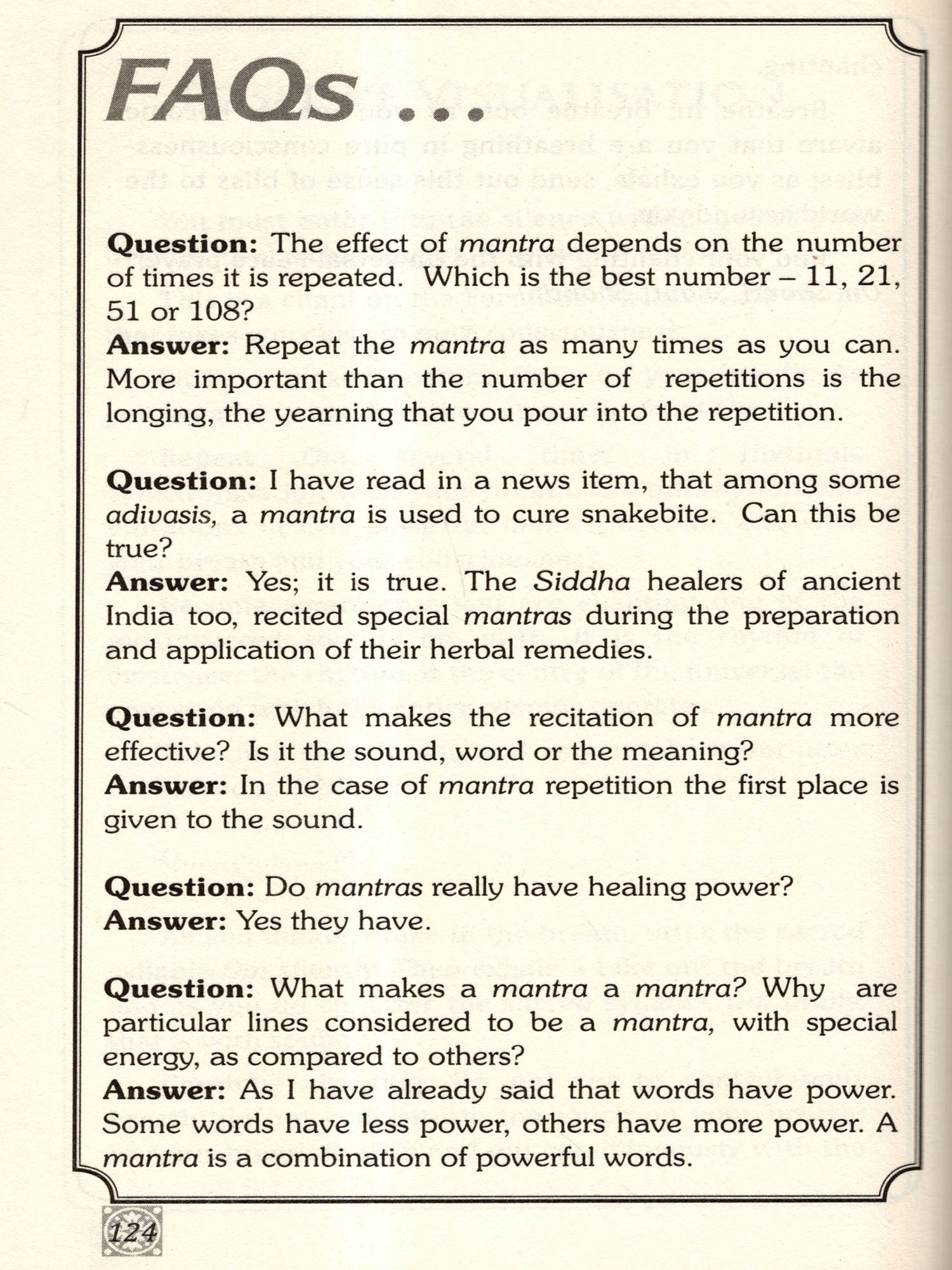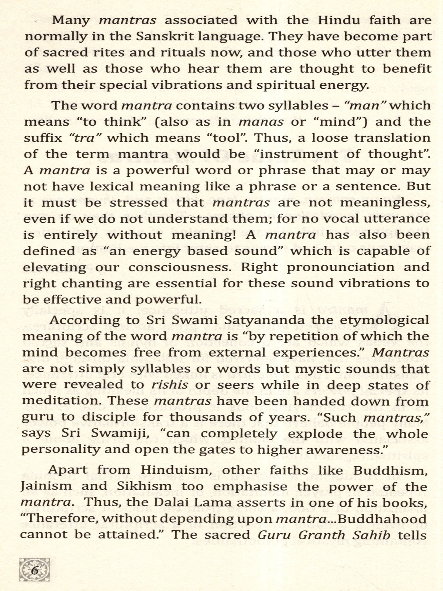 6. Each mantra, properly chanted with devotion and faith, helps us achieve the fourfold goals of this human life - dharma, artha, kama and moksha.