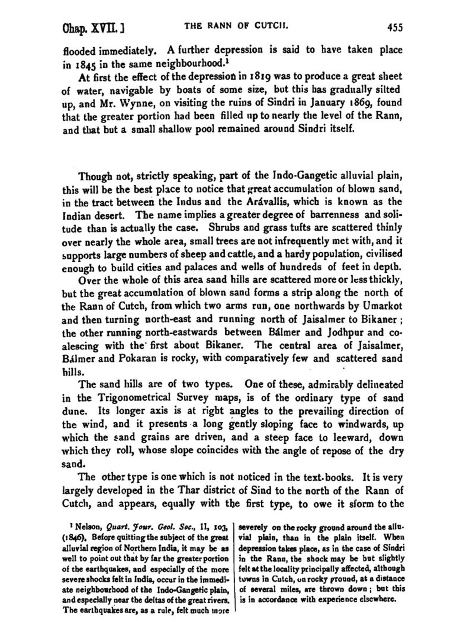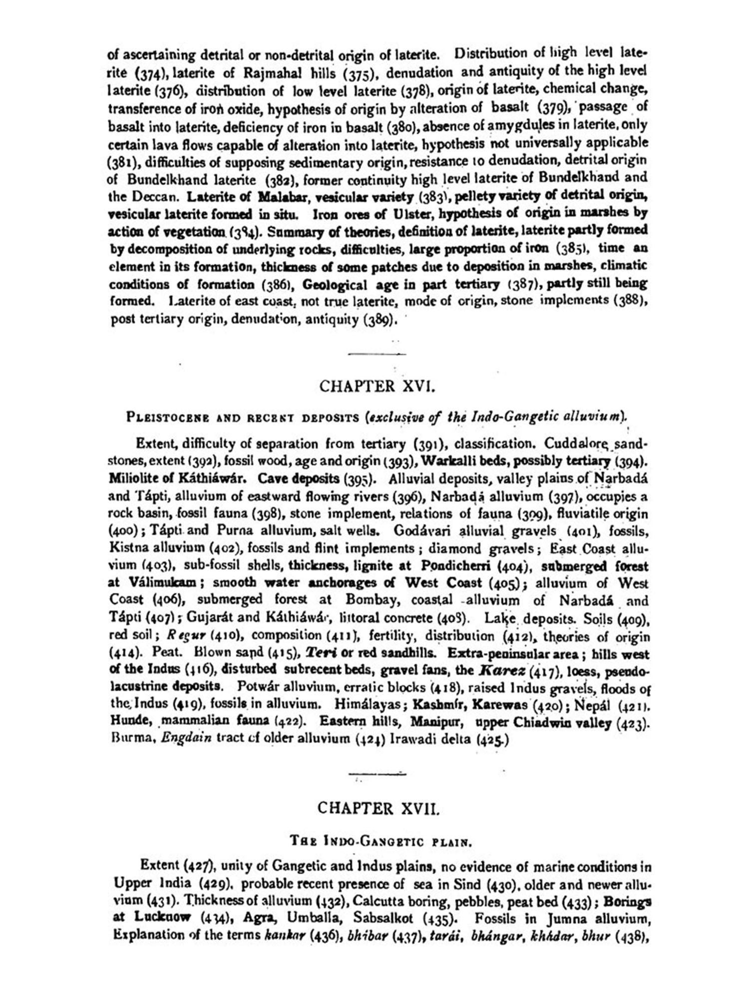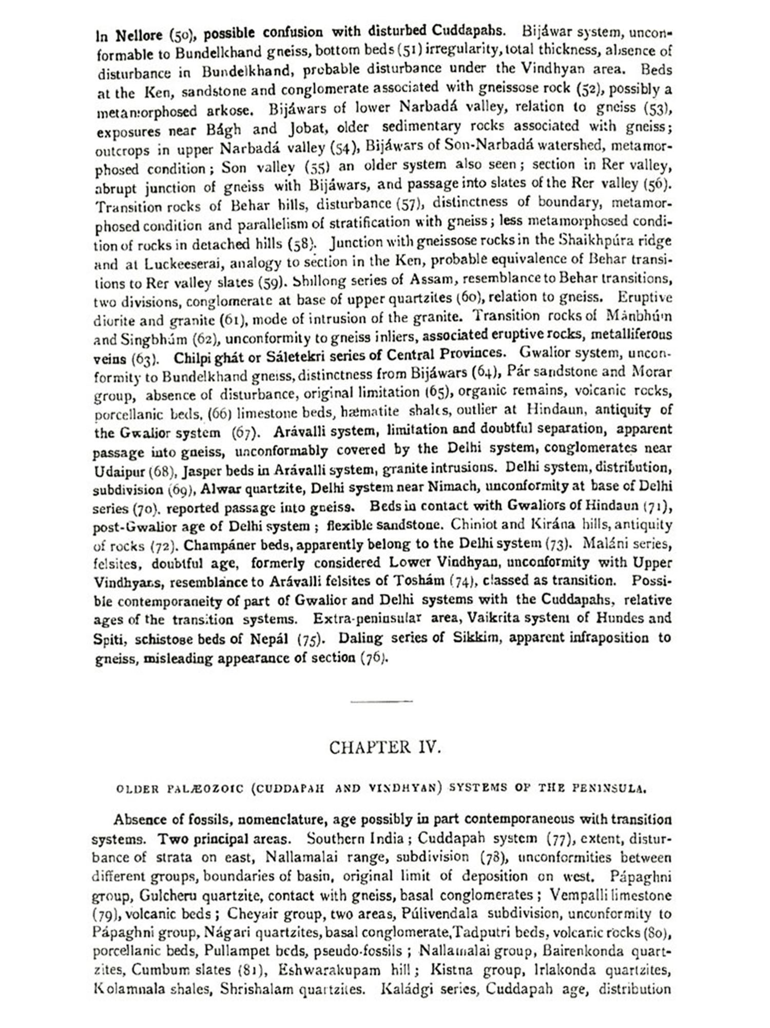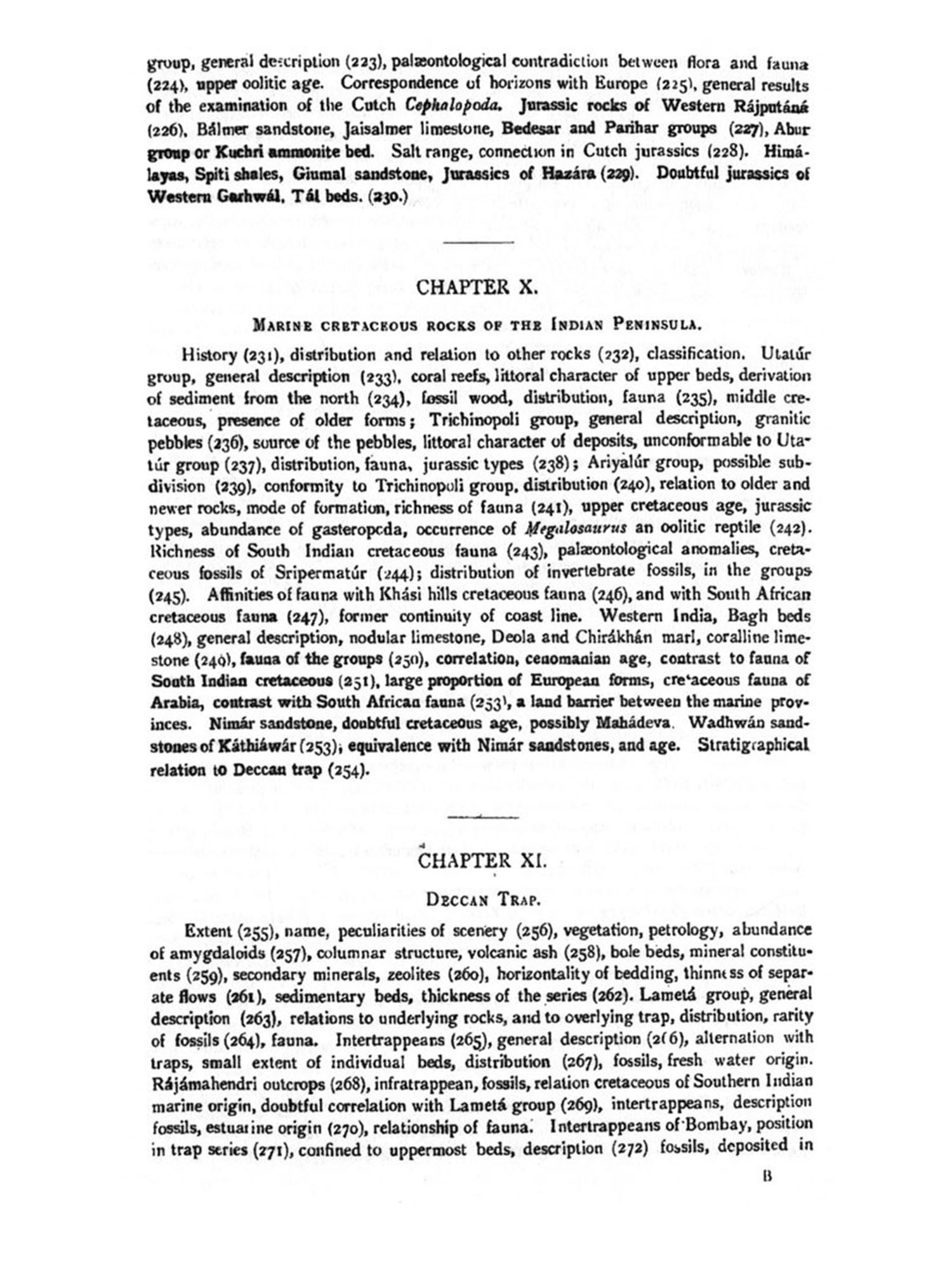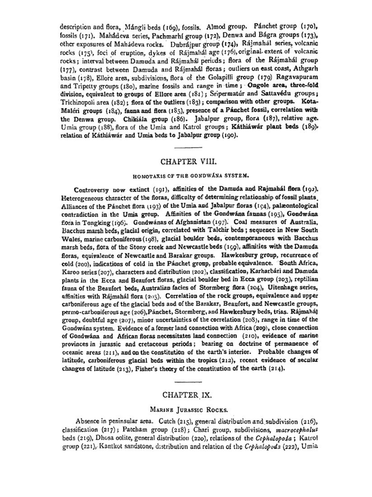 THE first edition of the Manual of the Geology of India was found to sup-ply a want so much felt that it soon went out of print, and for several years has only been procurable from the dealers in second-hand books. It had, besides, become out of date in many parts, and the Government of India decided that the time had come for the preparation of a new edition. So great have been the strides made in our knowledge of Indian Geology in the last fifteen years that it has been found possible to entirely change the arrangement of the book and to adopt the more scientific and orderly course of describing the rocks in chronological order, instead of breaking the book up into a series of descriptions of separate districts, as was found to be inevitable in the preparation of the first edition. There is not, unfortunately, everywhere the same certainty regarding the proper position in a chronological arrangement of particular groups of beds. Frequently the true homotaxis is unknown, and there is a conspicu-ous instance of the mistakes which may then be made, in certain rocks of the Arakan Yoma, which were supposed to be triassic at the date when this second edition was written, but have been shown to be eocene as the pages were passing through the press, and consequently rocks which should have been classed with the tertiary were described in the chapter devoted to the carboniferous and trias. Many districts have remained untouched since the publication of the first edition, and in all such cases, and wherever indeed no serious modifications of the original text have been necessary, it has been allowed to stand practically as in the original publication. All these passages have been carefully revised and generally more or less condensed, while many minor alterations needful to adapt them to the altered scope and arrangement of the work have been made, as well as such alterations as have been neces-sary on account of the advance of our knowledge. In the table of contents the portions in which the first edition has been taken as the basis of the text are distinguished by a different type from that which refers to the portions which are new or have been entirely re-written.