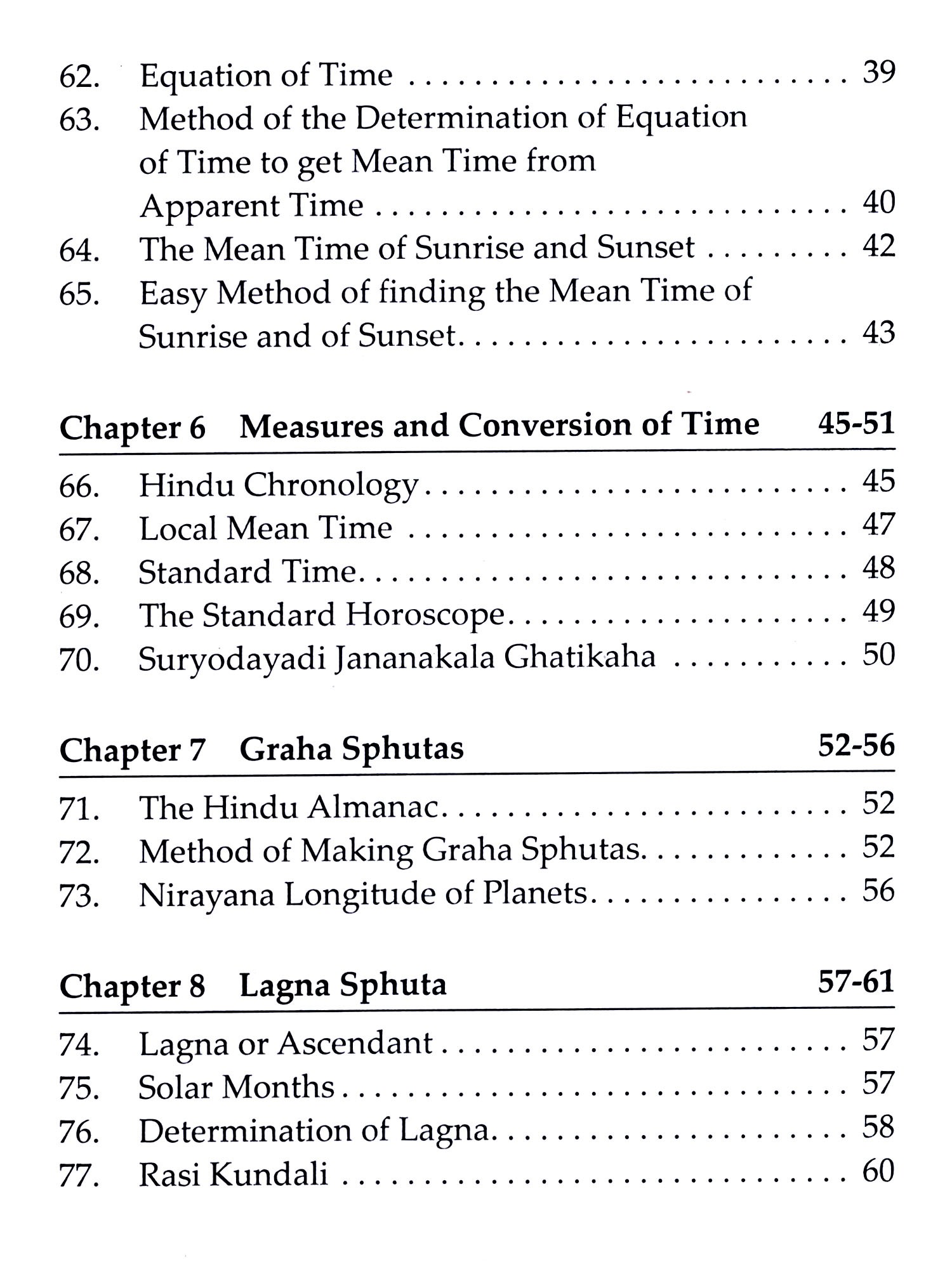 The present volume is devoted to the astronomical basis of Hindu Astrology, not without occasional sidelights on the theory of Western Astrology, but the manner in which the relevant findings are marshaled, and the methods expounded will not fail to hold the attention of the reader.