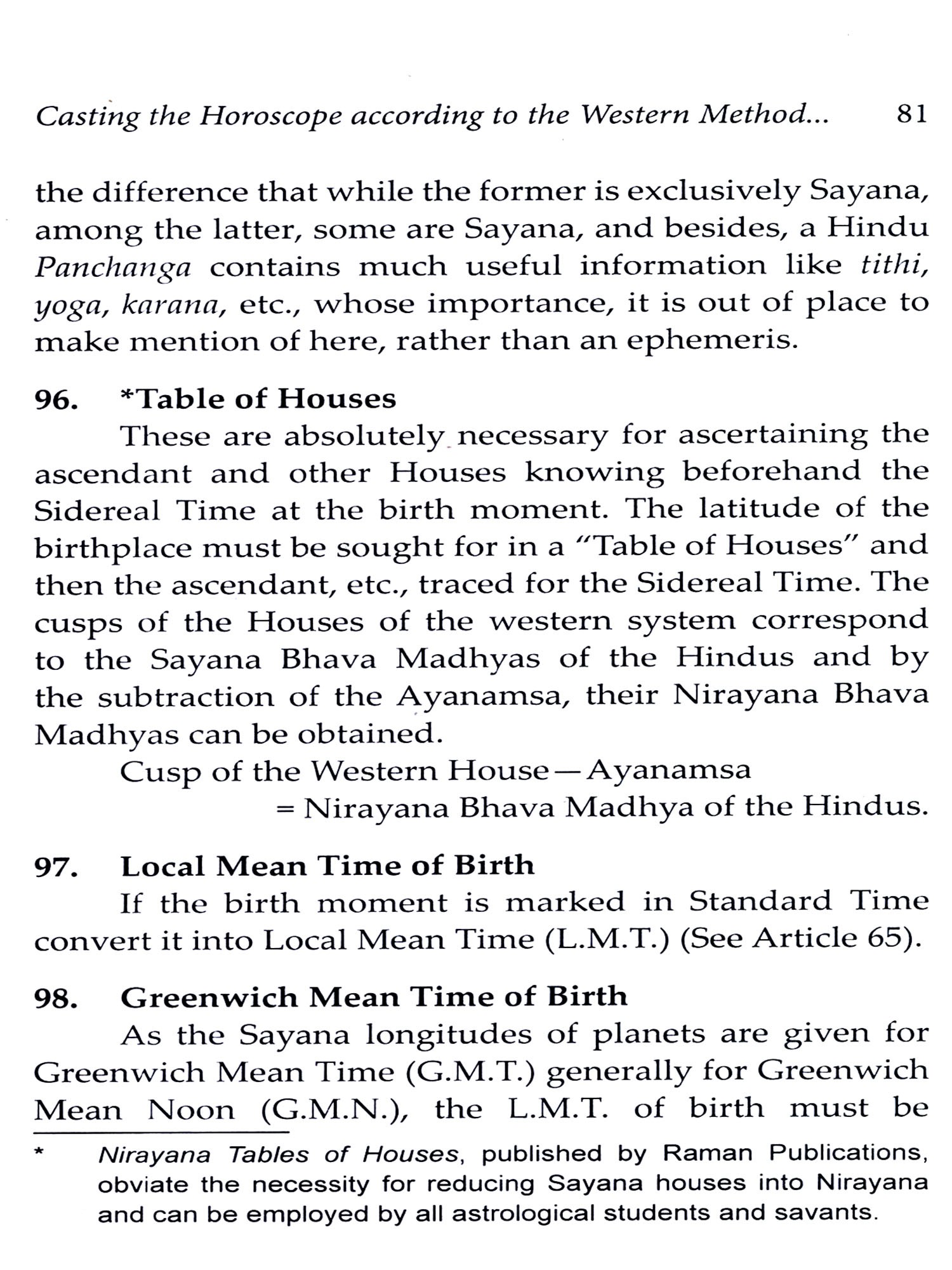 A separate chapter, exclusively devoted to describing the method of casting the horoscope etc., according to the Western system and its reduction to the Hindu, has been included and this is sure to enhance the value of the book by making it accessible to the Eastern and Western students alike.