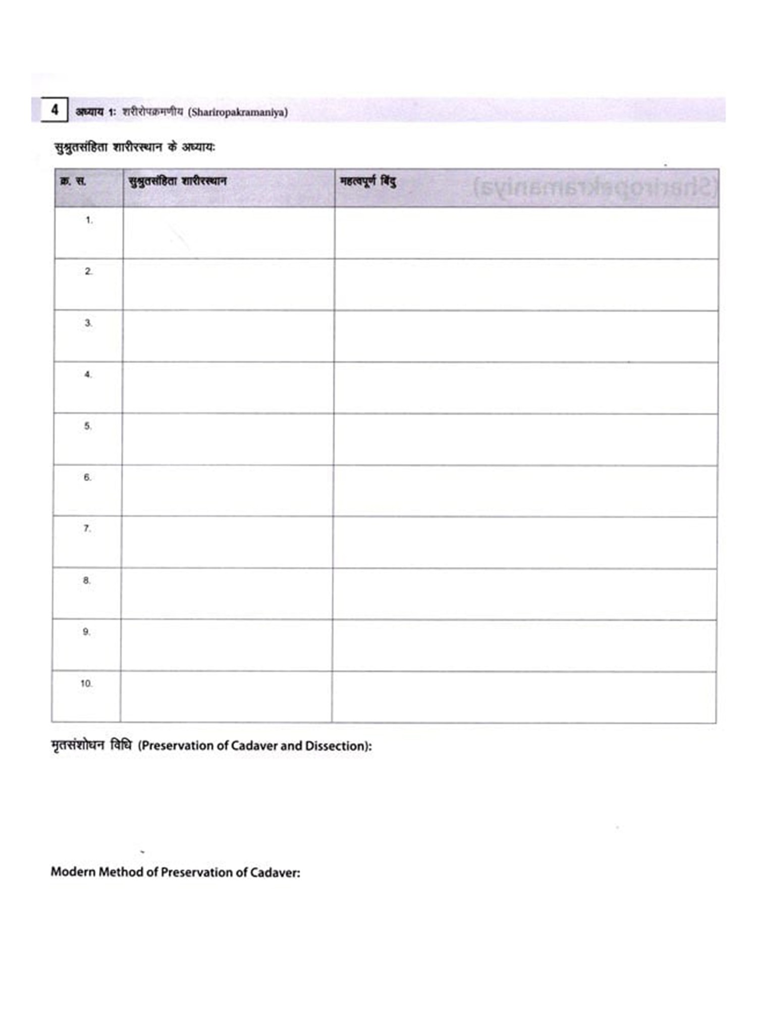 This is the first edition of any Practice Manual of Rachana Sharir. For a long time, the students of Ayurveda are writing their practicals and drawing diagrams in practical notebooks or using modern anatomy practical books which are designed for MBBS syllabus. Lacuna in this field has motivated the author to write a Practice Manual particularly for Ayurveda students. Practical is an important and integral part of learning Rachana Sharir which is a specified field of Ayurveda.