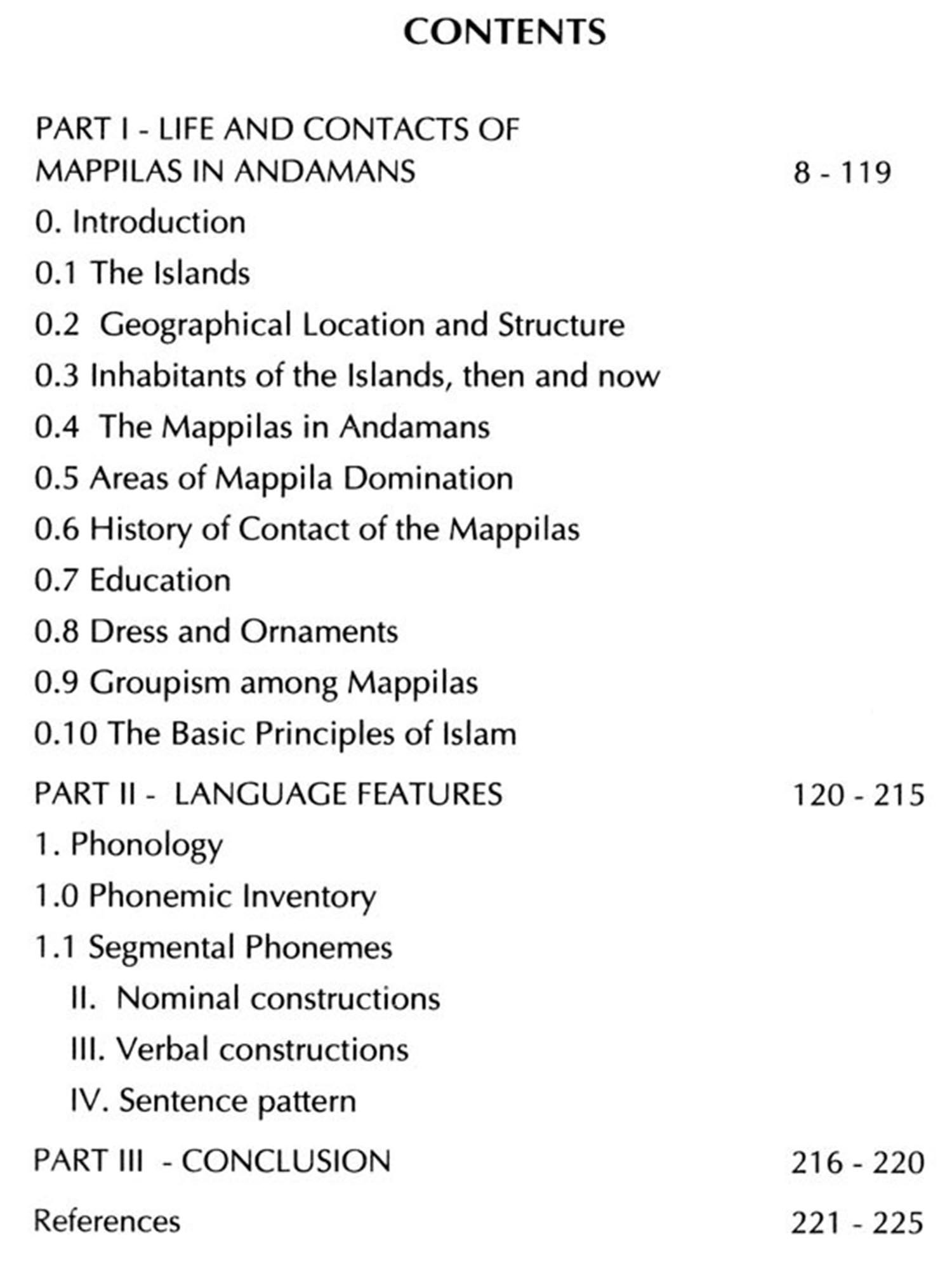'Mappila Migrants in Andamans is a socio-linguistic study' conducted by me as Junior Research Fellow for ISDL in 1979 - 80. I consider it as a privilege to have been selected for this study. I was working as a Junior Research Fellow at the Department of Linguistics, University of Kerala when this offer came.