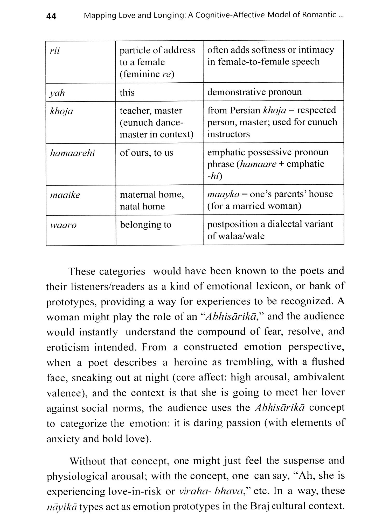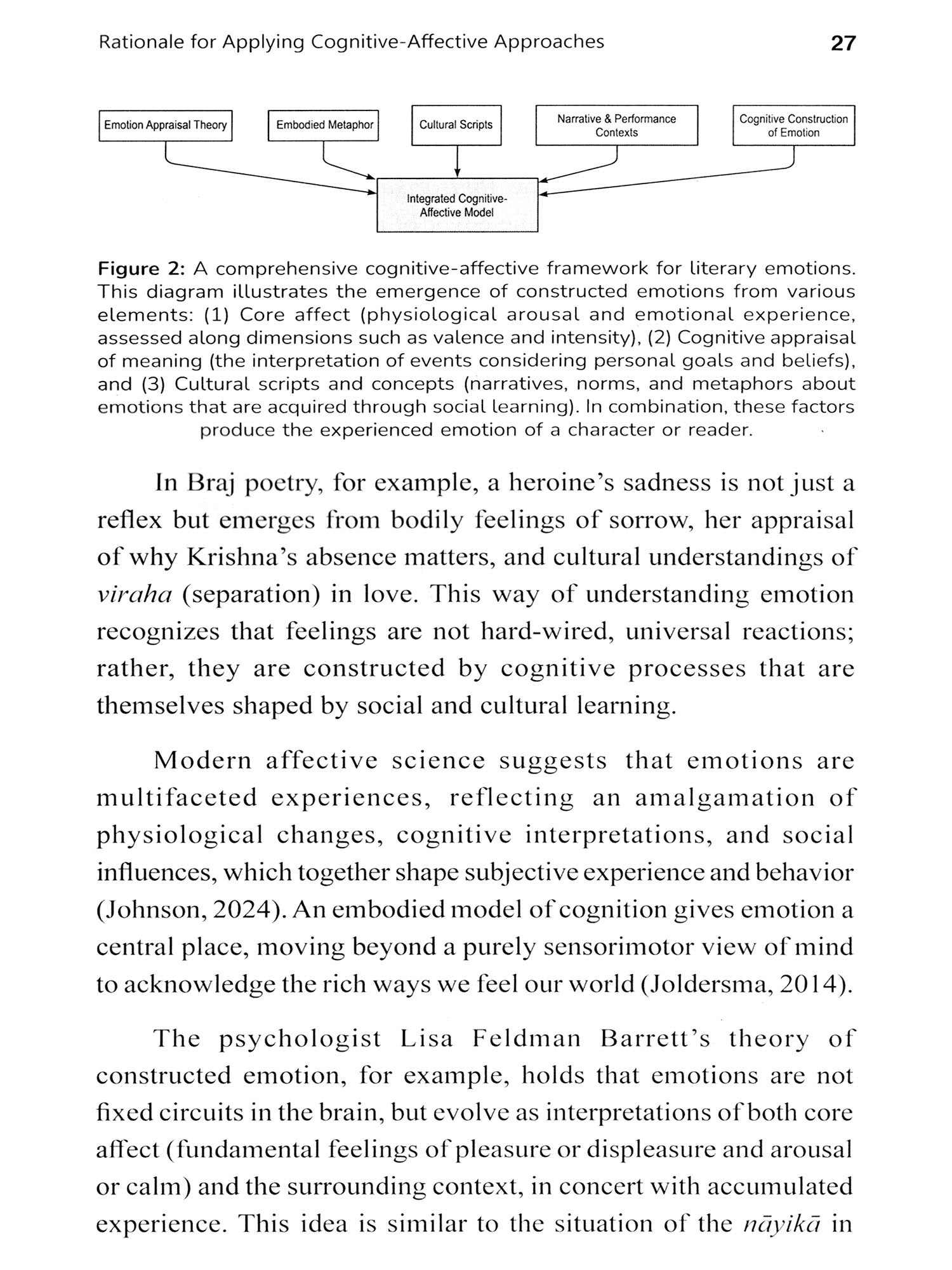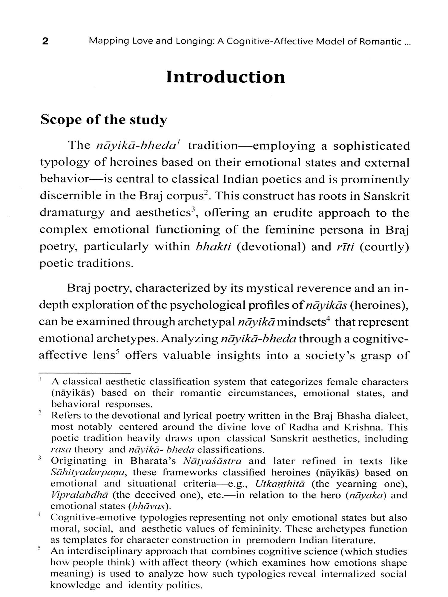 This book grew out of a long-standing fascination with the point where classical Indian aesthetics meets contemporary affect science and lived poetic practice. In the intricate landscape of the Braj verse, the many-sided heroines (nayikas) function not only as literary figures, but as a finely wrought cartography of early-modern emotional life-an unspoken psychology in rhyme and rhythm. I aim to show that the traditional taxonomy of nayika-bheda gains fresh clarity when read through the lenses of cognitive literary studies and modern appraisal theories of emotion.
