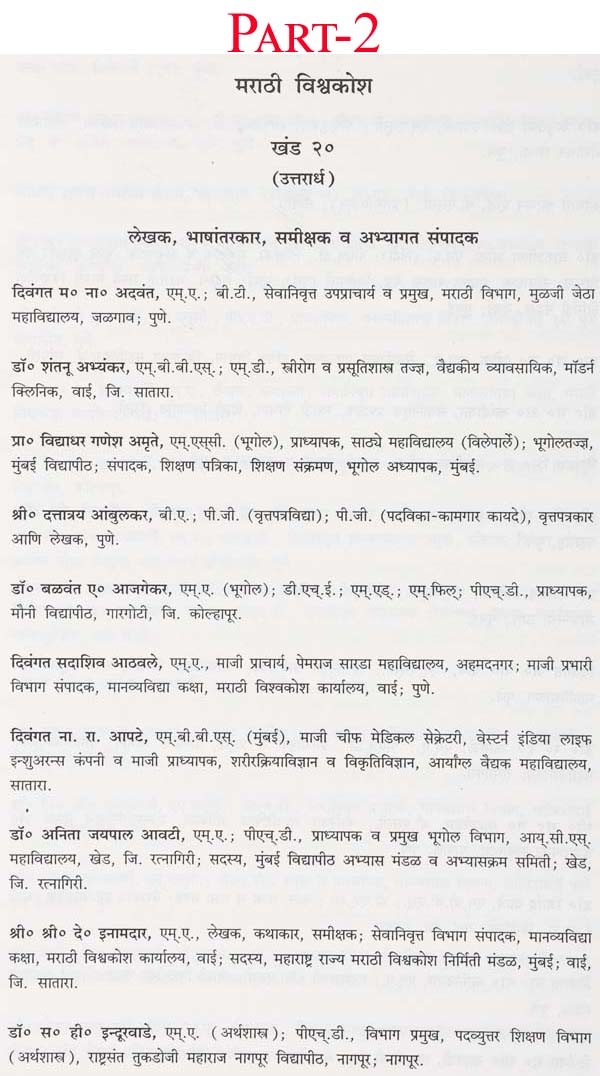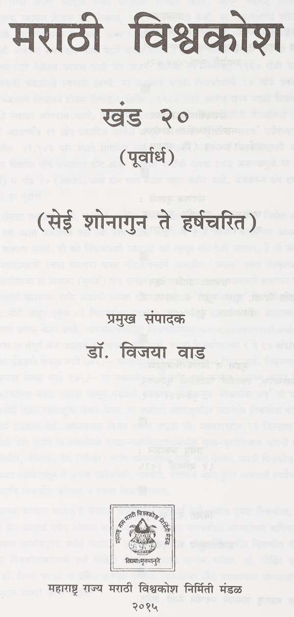 मराठी विश्वकोश (सूचिखंड): Marathi Encyclopedia- List Section (Volume 21)