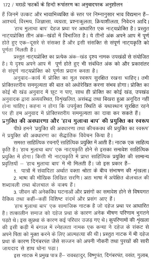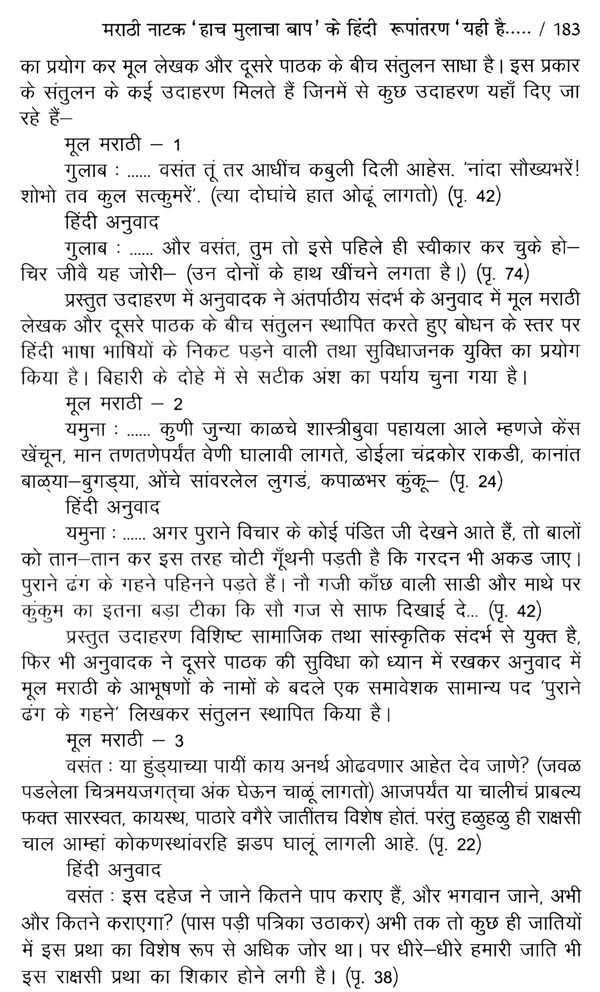 पाँचवा अध्याय : में हाच मुलाचा बाप' के हिंदी रूपांतरण 'यही है वर का बाप' की समीक्षा की है। प्रस्तुत अध्याय में अनुवाद की गहन समीक्षा हेतु प्रस्तावित प्रारूप का आधार ग्रहण करते हुए अनुवादपरक अनुशीलन प्रस्तुत किया है।