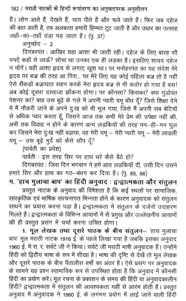 अनुवाद-विज्ञान के प्रति मेरे मन में आरंभ से ही रुचि रही है। 'मराठी से हिंदी में अनूदित उपन्यास साहित्य का अनुवादपरक समीक्षात्मक अनुशीलन शोध-प्रबंध पढ़ने पर मेरी रुचि में अधिक वृद्धि हुई और मैंने 'मराठी से हिंदी में अनूदित नाट्य साहित्य का अनुवादपरक समीक्षात्मक अनुशीलन' विषय पर अनुसंधान-कार्य करने का संकल्प किया।