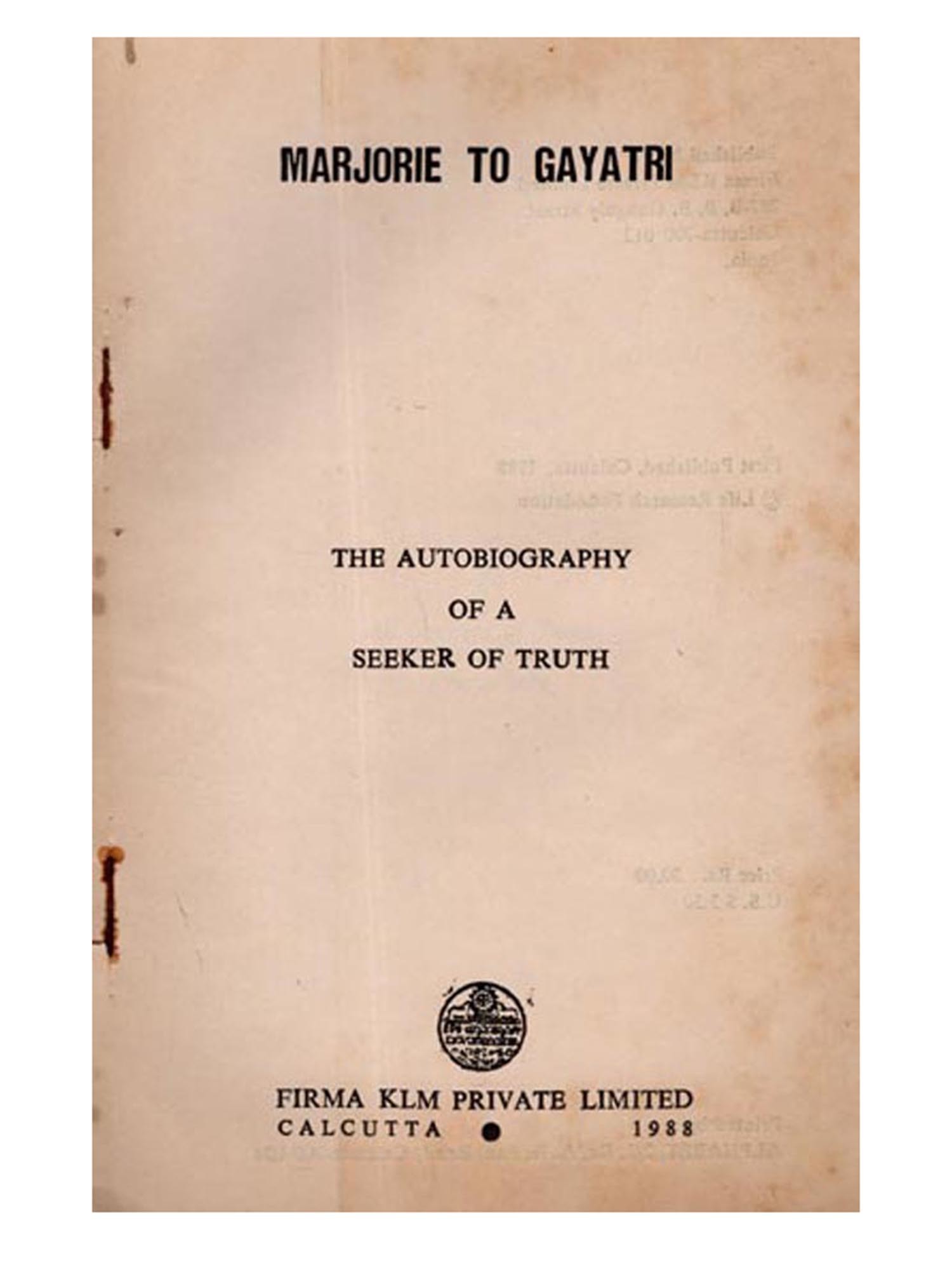 The author of this autobiography is a 71 year old American lady whom I have known for the last twelve years. She has travelled around the world time and again first with her husband and then with other friends. Her ideal and goal all through has been to discover and experience the truth of life.