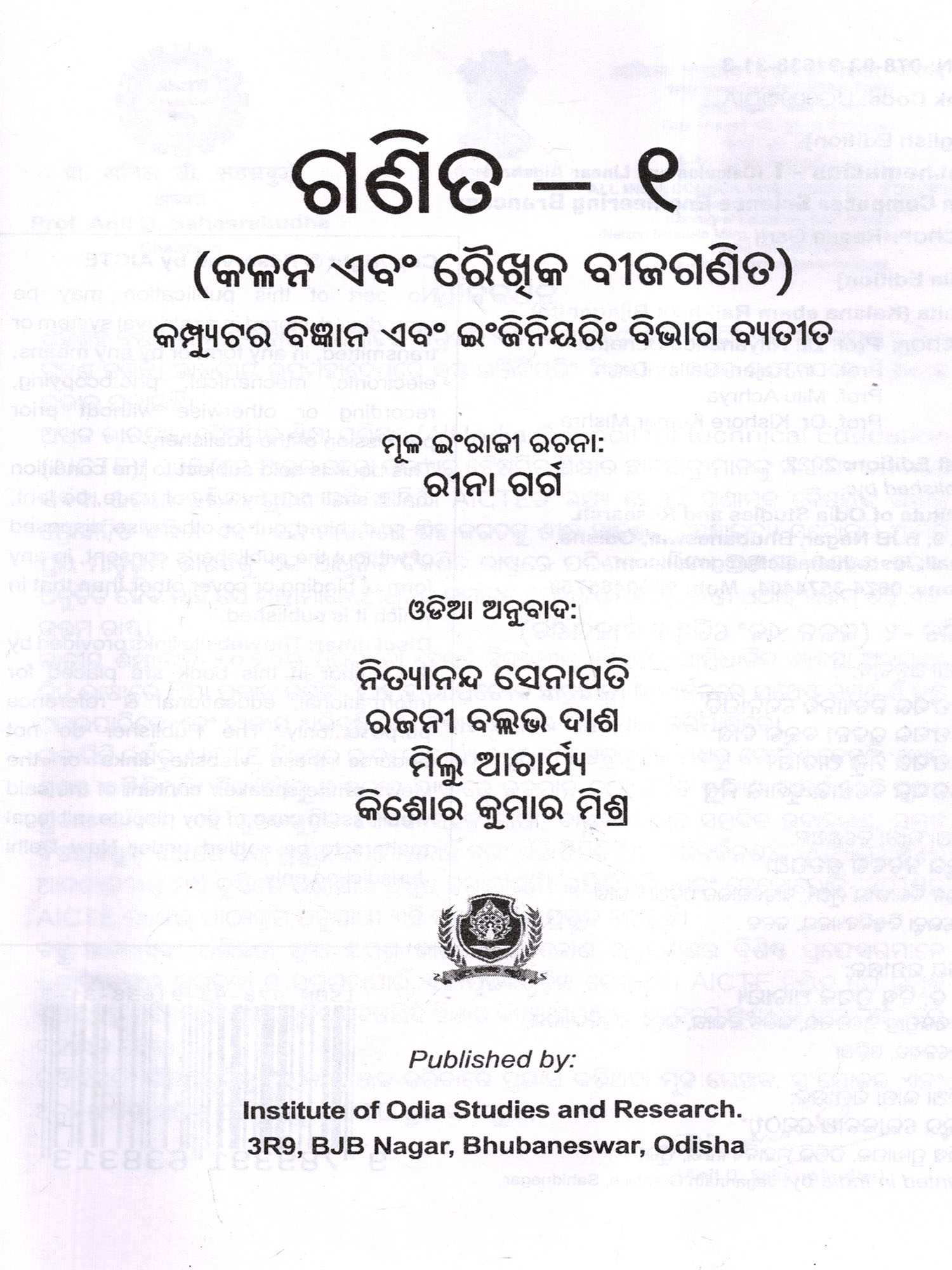 ଗଣିତ: Mathematics - I (Calculus and Linear Algebra) Non-Computer Science Engineering Branches (As Per AICTE Approved Model Syllabus Parallel to Outcome Based Education National Education Policy - 2020 in Oriya)