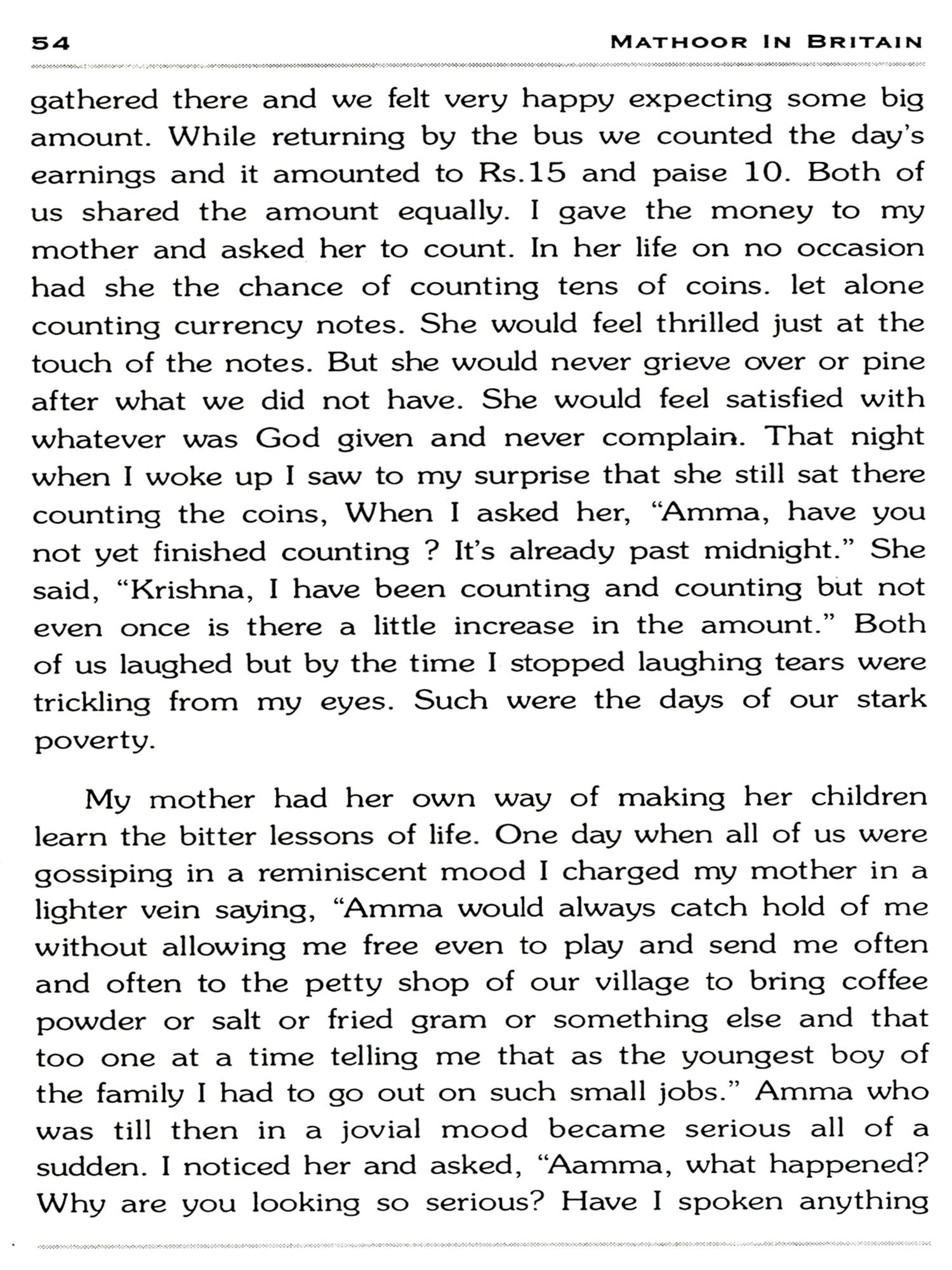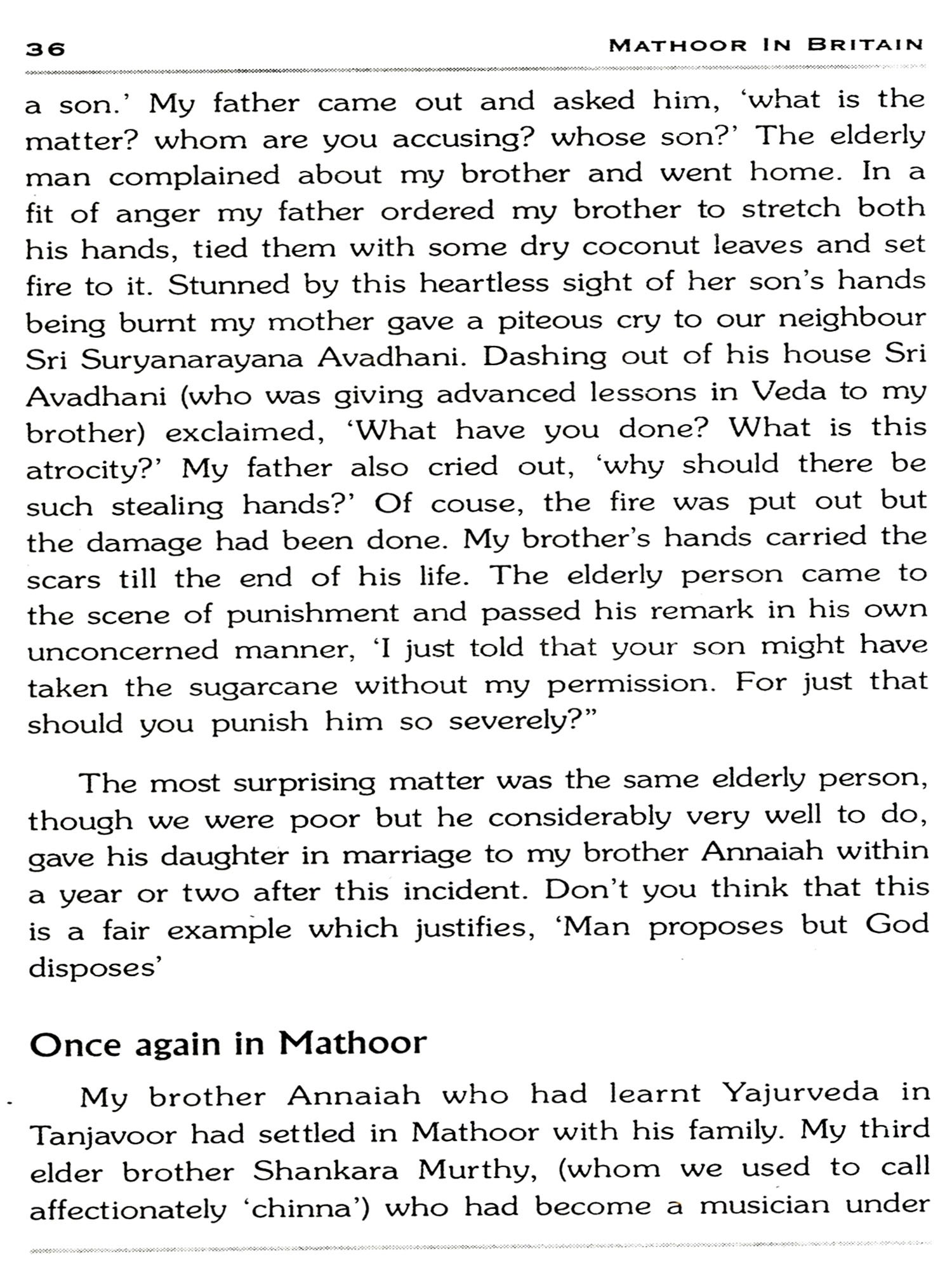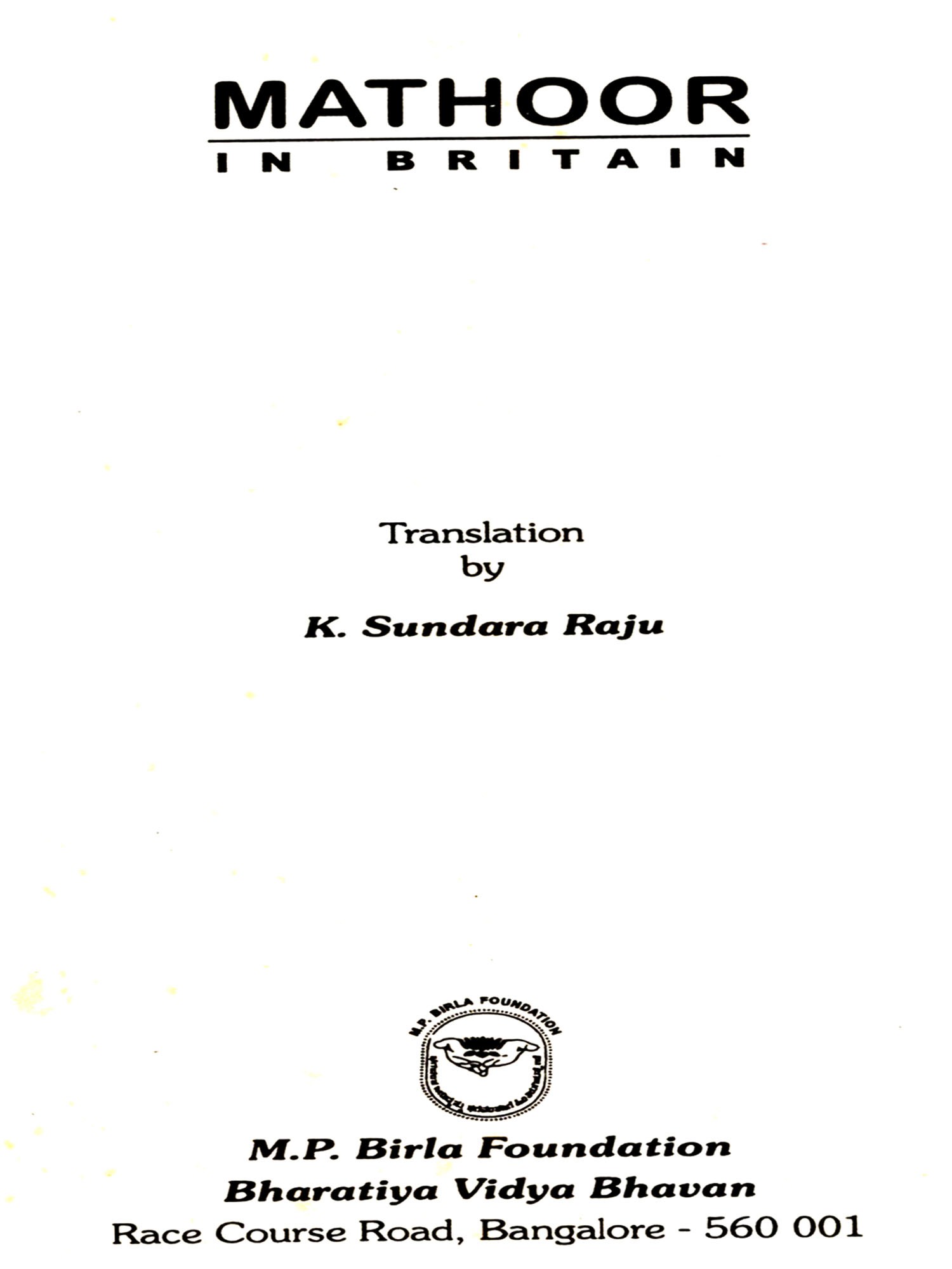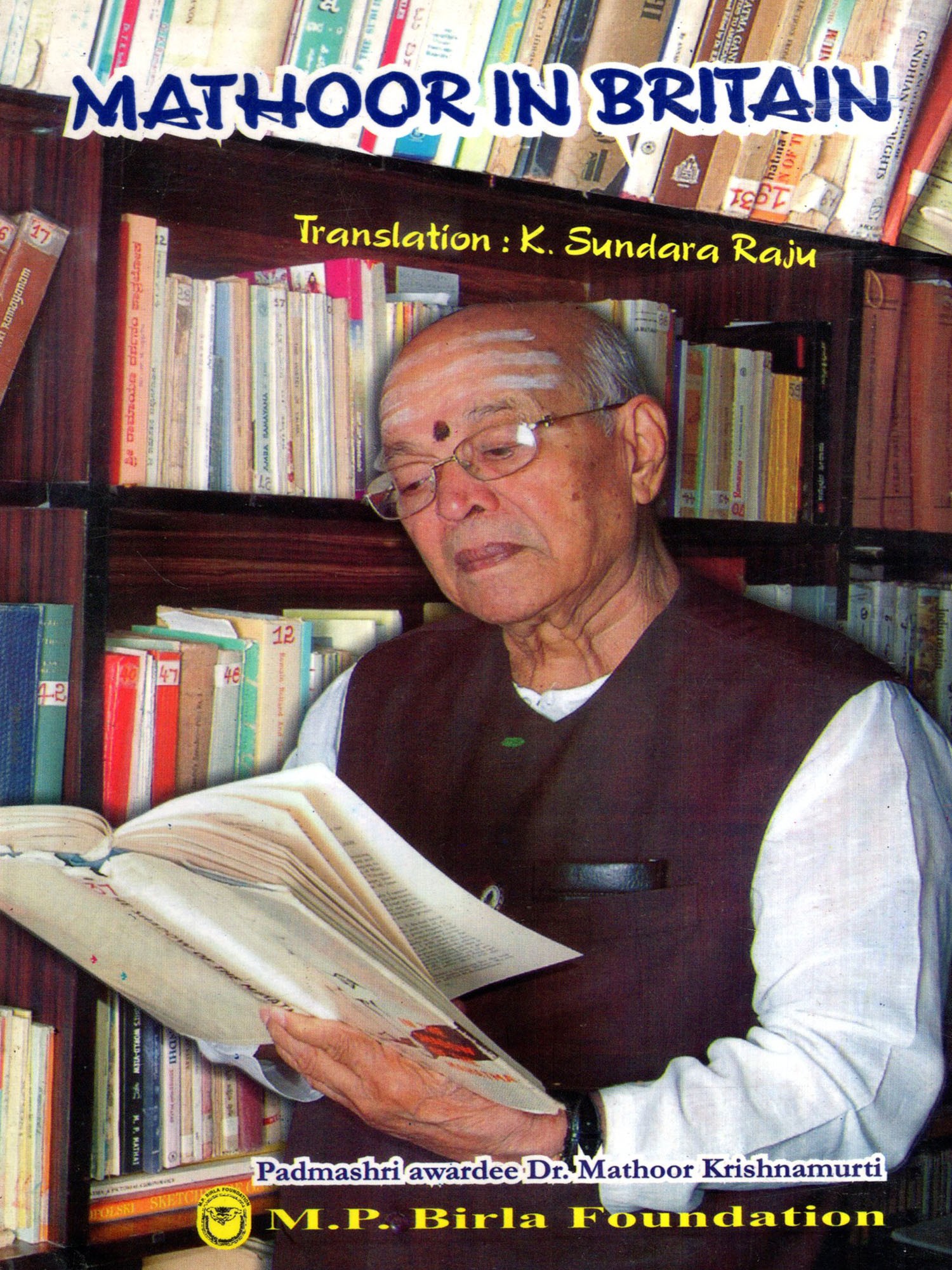 The book 'Mathoor Gathe' is a biography in Kannada of Dr.Mathoor Krishnamurti by Smt. Surnana Vishwanath. The book is translated into English by Sri Sundara Raju under the title 'MATHOOR IN GREAT BRITAIN'. A second edition is being issued now.