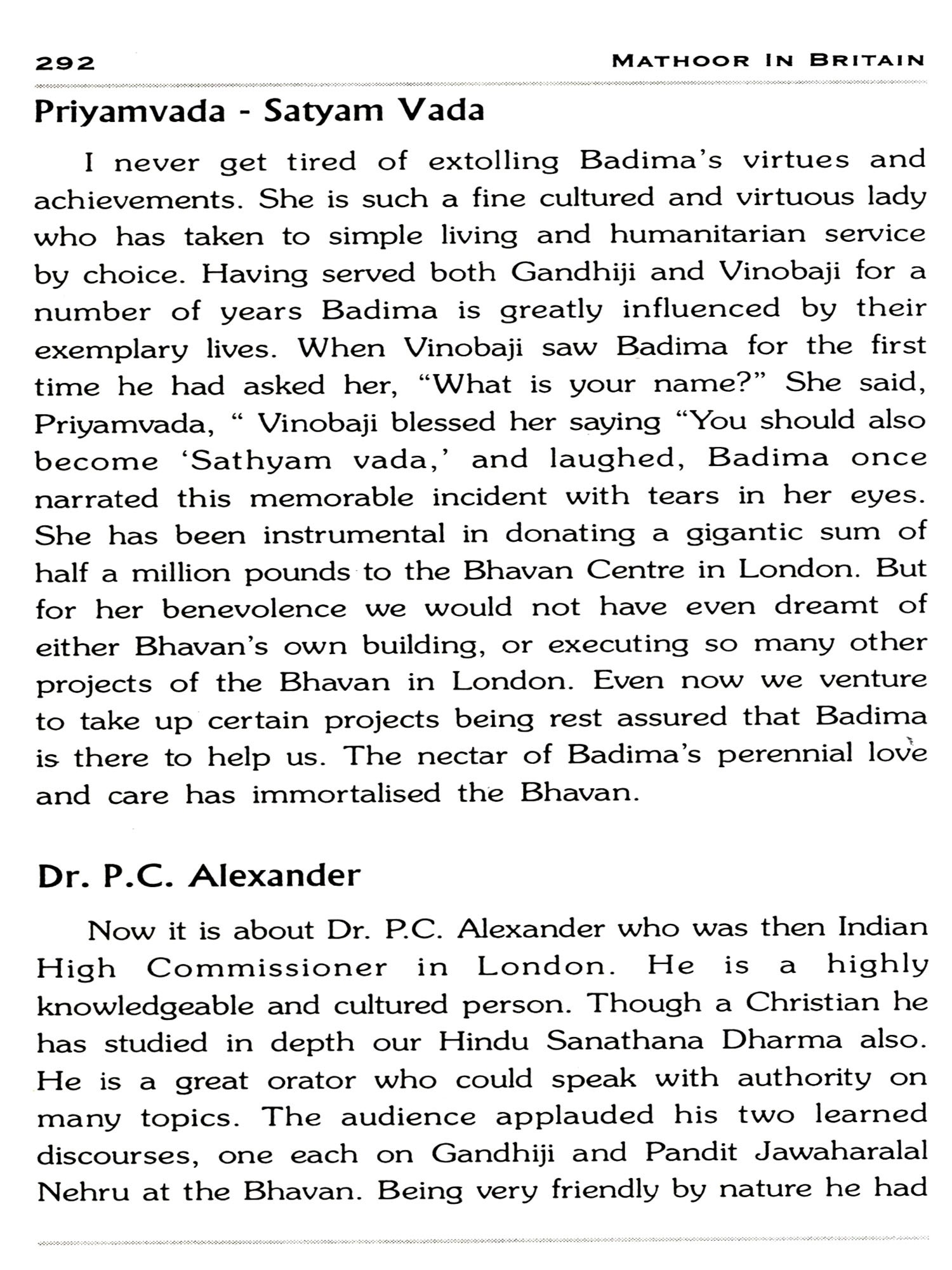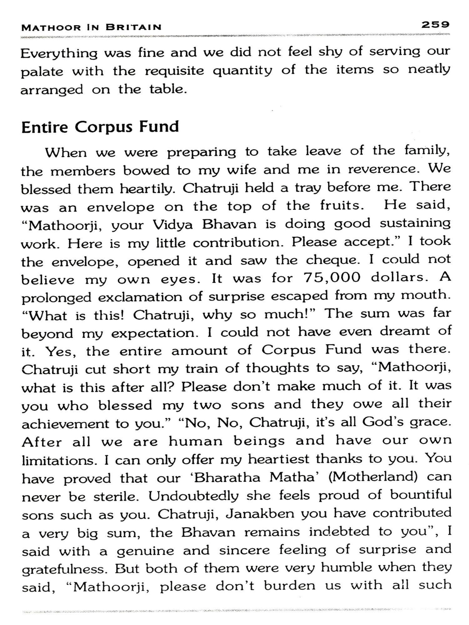 It is no exaggeration, if we say that the present Bhavan's London Centre is the creation of Dr.Mathoorji. Virtually he played the role of a Cultural Ambassador of India in London during his days at London.