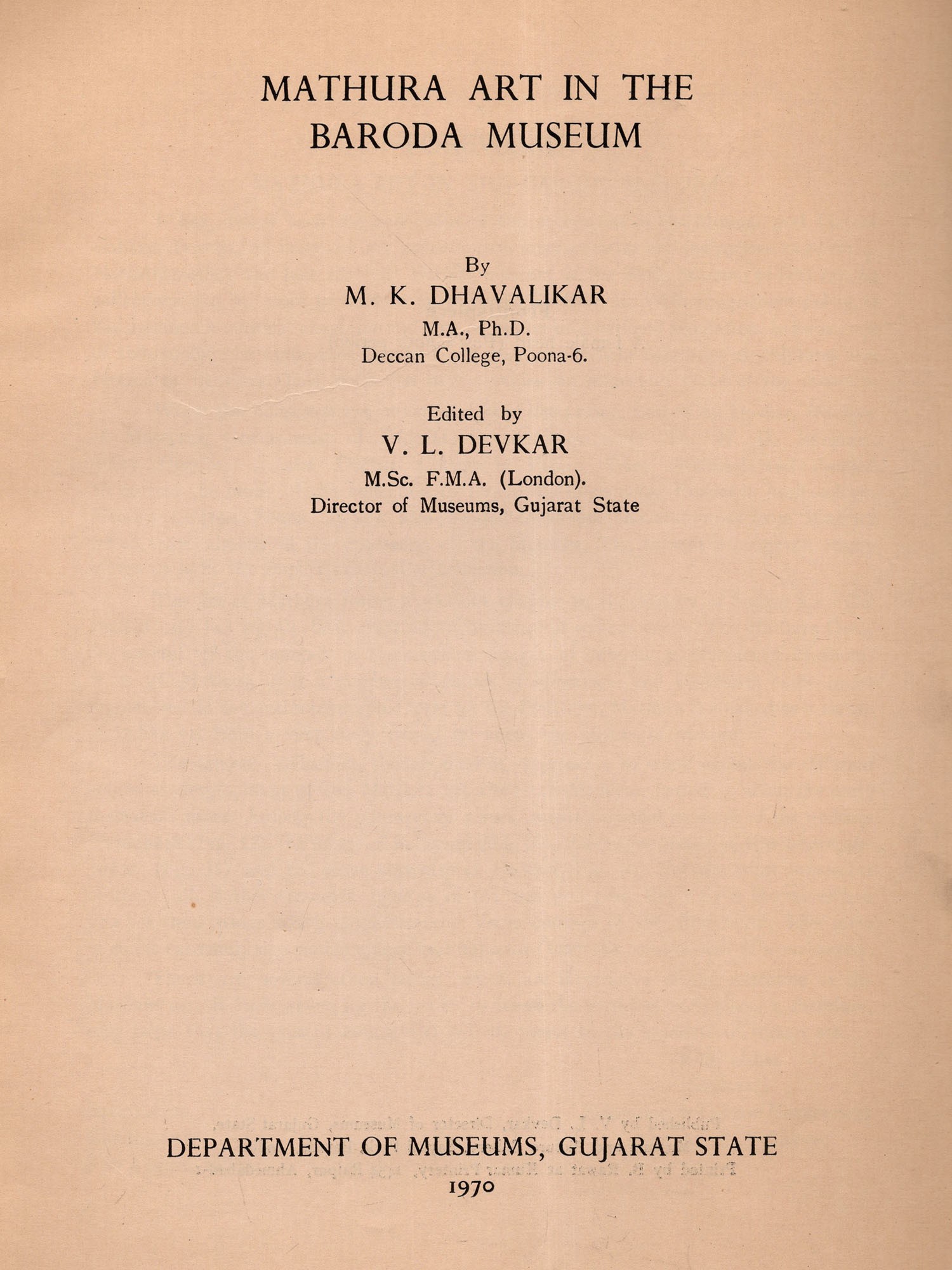 When the collection was in the process of acquisition, Shri V. L. Devkar, Director Dr. H. D. Sankalia, of Museums, Government of Gujarat, happened to meet Joint Director of the Deccan College in Poona. They discussed and decided to entrust the study of the collection to Dr. M. K. Dhavalikar, Reader in Archaeology. Deccan College, Poona. It was also decided to include the antiquities from Mathura which were already in the possession of the Museum. The present monograph amply brings to light the importance of the collection.