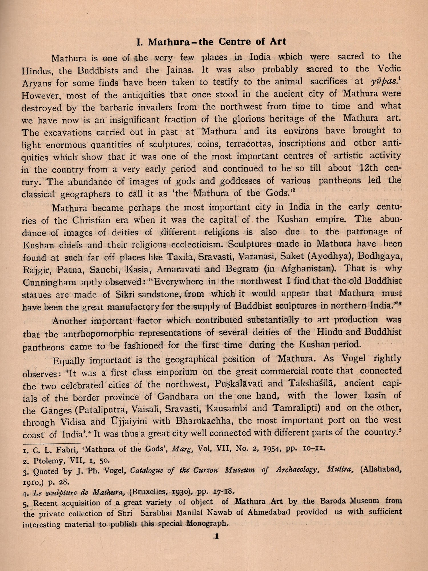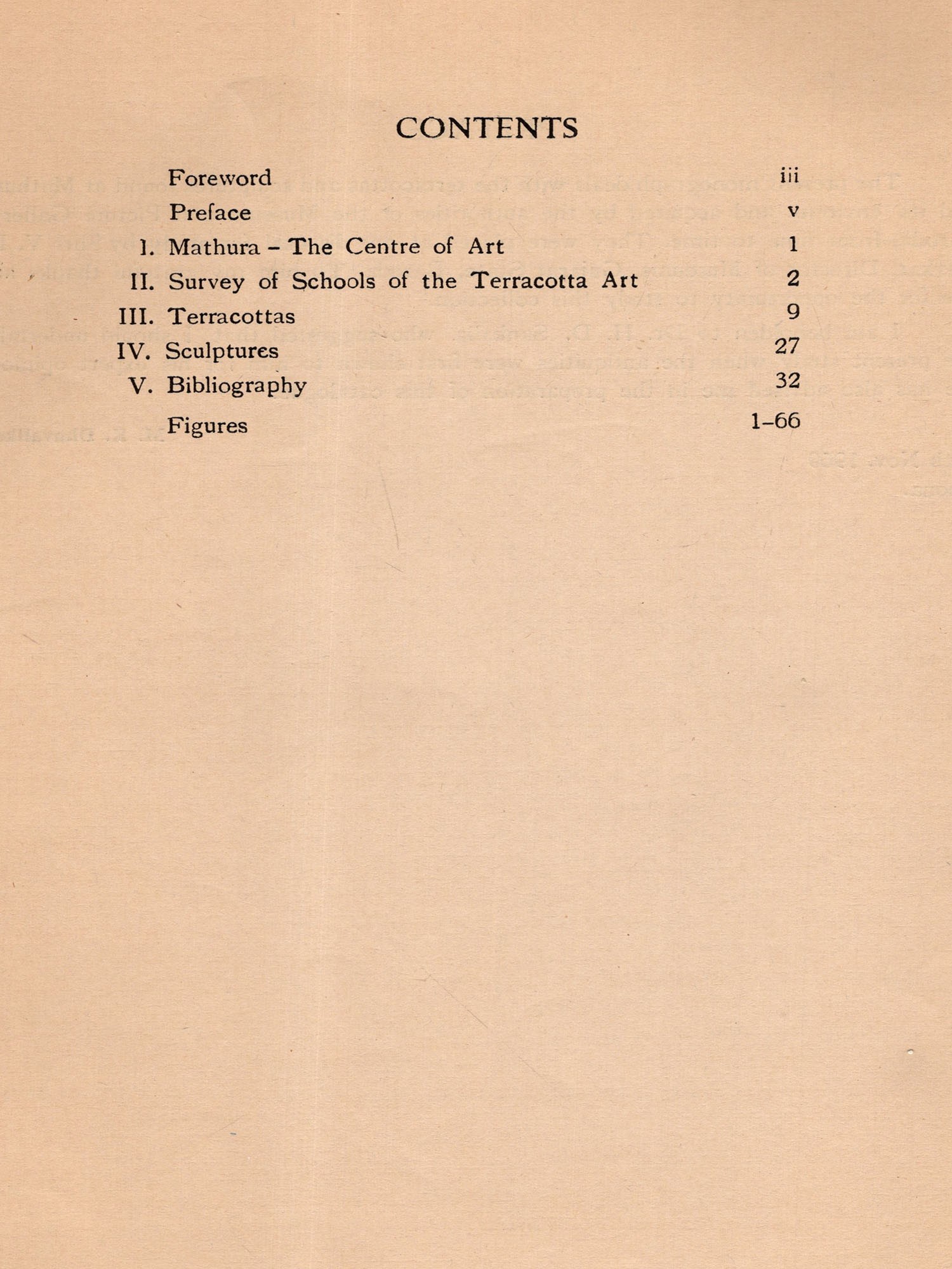 The present monograph deals with the terracottas and sculptures found at Mathura and its environs and acquired by the authorities of the Museum and Picture Gallery, Baroda, from time to time. They were placed at my disposal for study by Shri V. L. Devkar, Director of Museums, Gujarat State. Baroda. To him my grateful thanks are due for the opportunity to study this collection.
