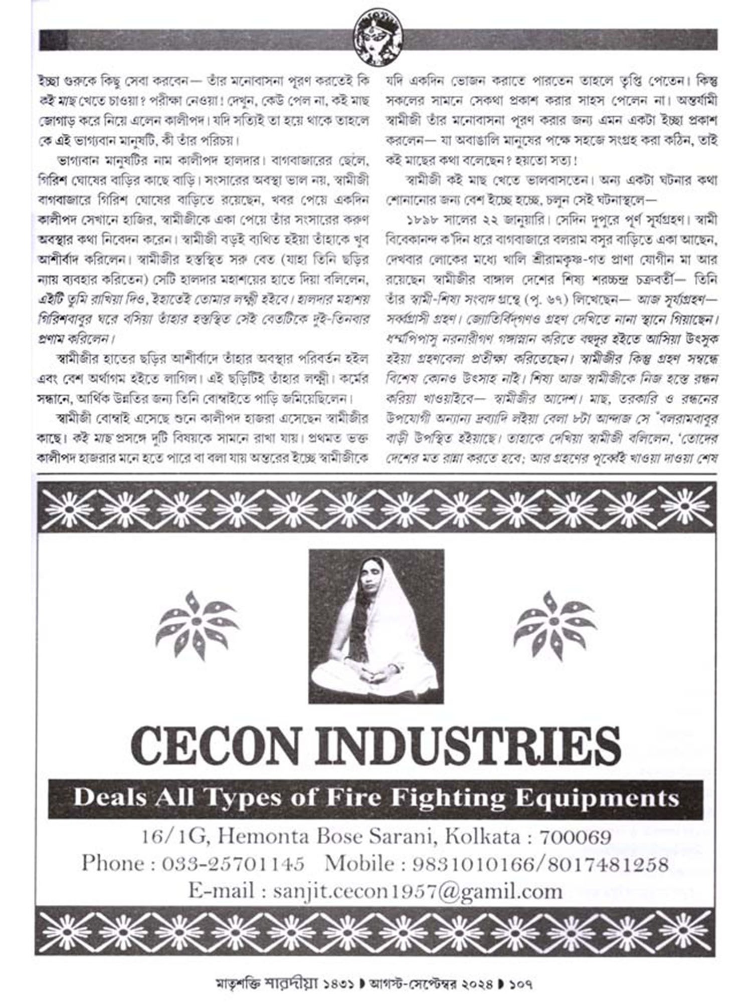 অবিস্মরণীয়া শ্রীশ্রীমা সর্বাণী: The Unforgettable Sri Sri Maa Sarvani in Bengali